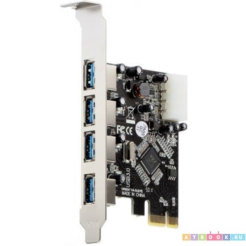 Контроллер расширения ORIENT (PCI-E 4 port USB 3.0 доп разъём питания VIA VL800) Ret VA-3U4PE