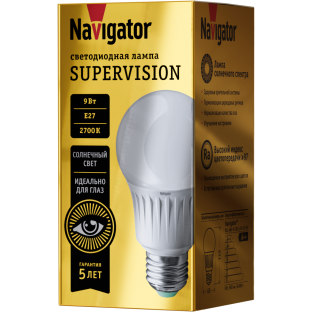 Светодиодные лампы нового поколения, в которых используются инновационные светодиоды со спектром света, максимально приближенным к солнечному. Светодиодные лампы ''Navigator Supervision'' безопасны для глаз и обеспечивают максимально комфортное освещение для работы и отдыха. Равномерный спектр света без пиков в области синего цвета и провалов в области сине-бирюзового и красного цветов гарантирует здоровье зрительной системы, что особенно важно для детей, у которых естественная защита глаза от избыточного синего цвета еще не сформирована, гармонизацию биоритмов: улучшение качества сна и поддержку гормональной системы. Индекс цветопередачи - 97, максимально приближенный к солнечному свету, обеспечивает физиологичные зрительные ощущения без дискомфорта, полноценное восприятие цветов и оттенков. Светодиоды нового поколения ''Bridgelux Thrive'' (США). Усовершенствованная система отвода тепла, способствующая увеличению срока службы лампы. Высокая эффективность до 100 лм/Вт. Надежный драйвер и работа в широком диапазоне входных напряжений 176-264 В.