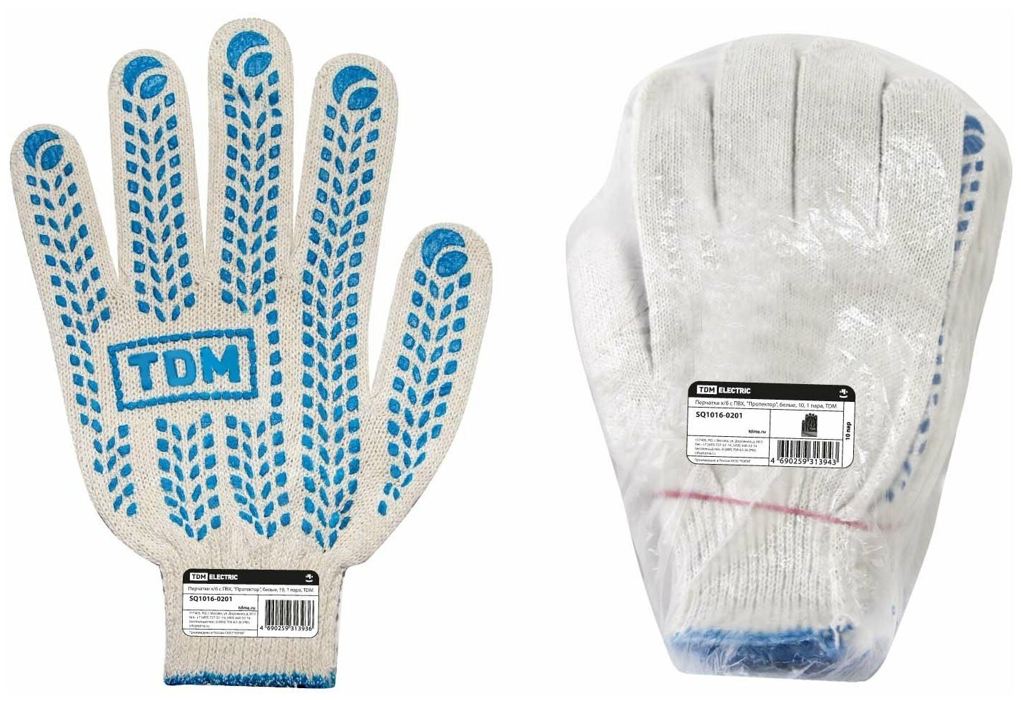 Перчатки TDM х/б с ПВХ "Протектор" белые 10 1 пара SQ1016-0201 (размер: нет данных)