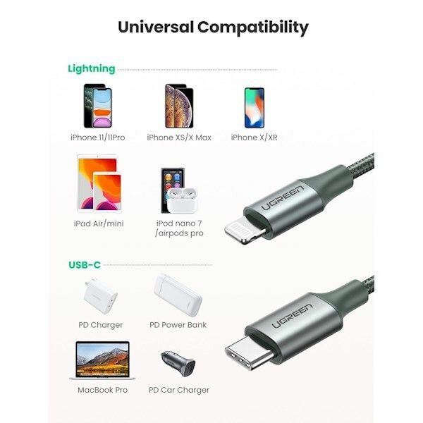 Сервис сравнения цен СкидкаГИД предлагает сравнить цены на товар «Кабель UGREEN 80564_ USB-C to Lightning M/M Aluminum Shell Braided 1м midnight green US304»