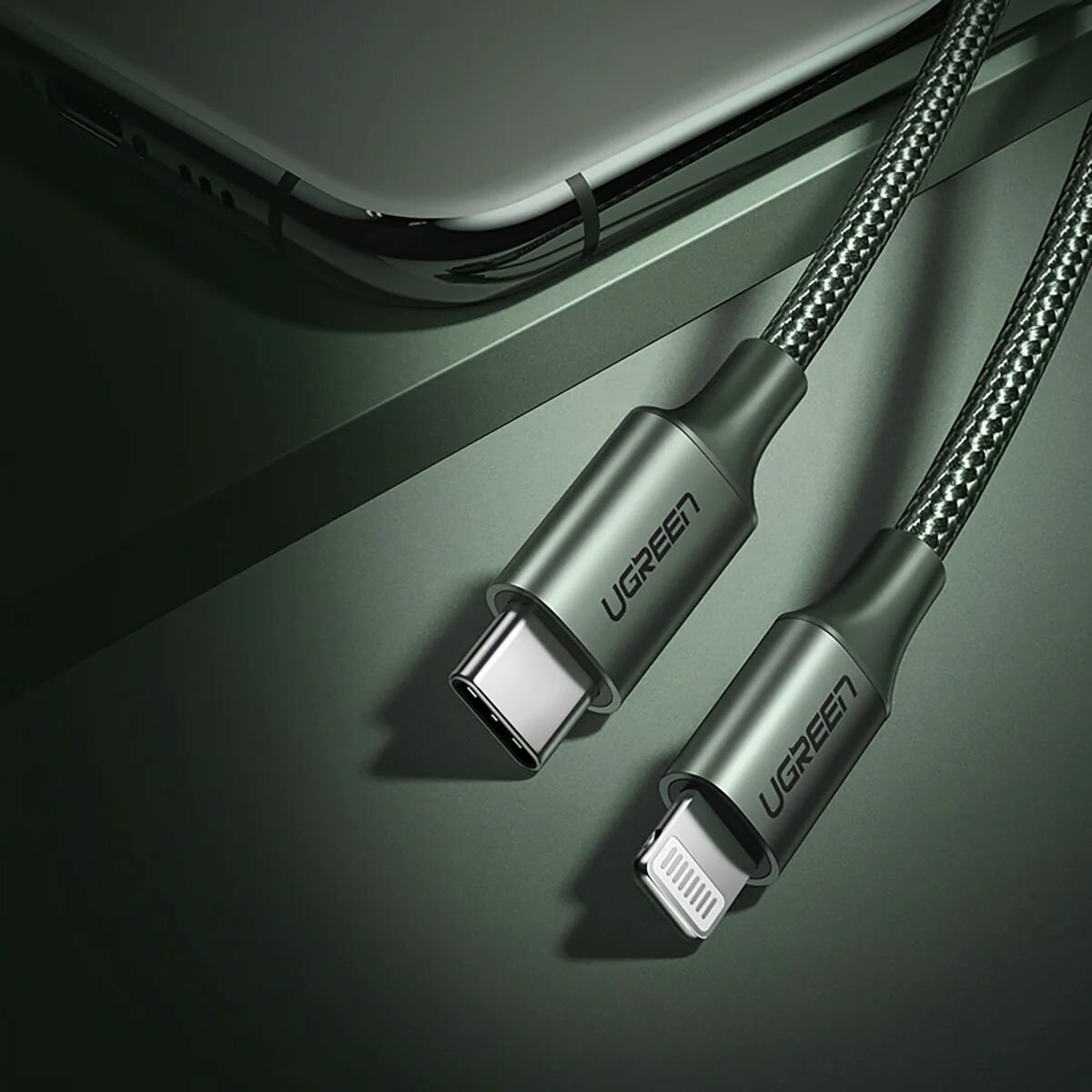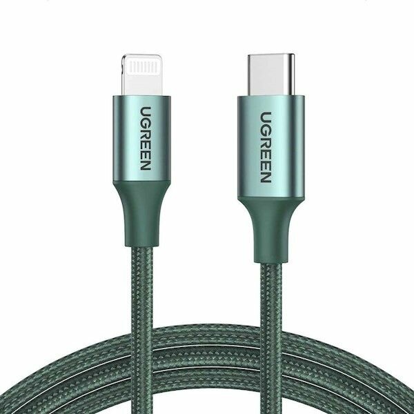 Кабель UGREEN 80564_ USB-C to Lightning M/M Aluminum Shell Braided 1м midnight green US304