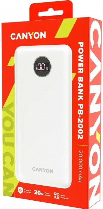 Аккумулятор внешний портативный Canyon 20000 мАч Input Type-C 5V3A9V2A18W. Output Type-C: 5V3A9V2.2A12V1.5A20W Output USBA1/USBA2: 5V3A PB-2002