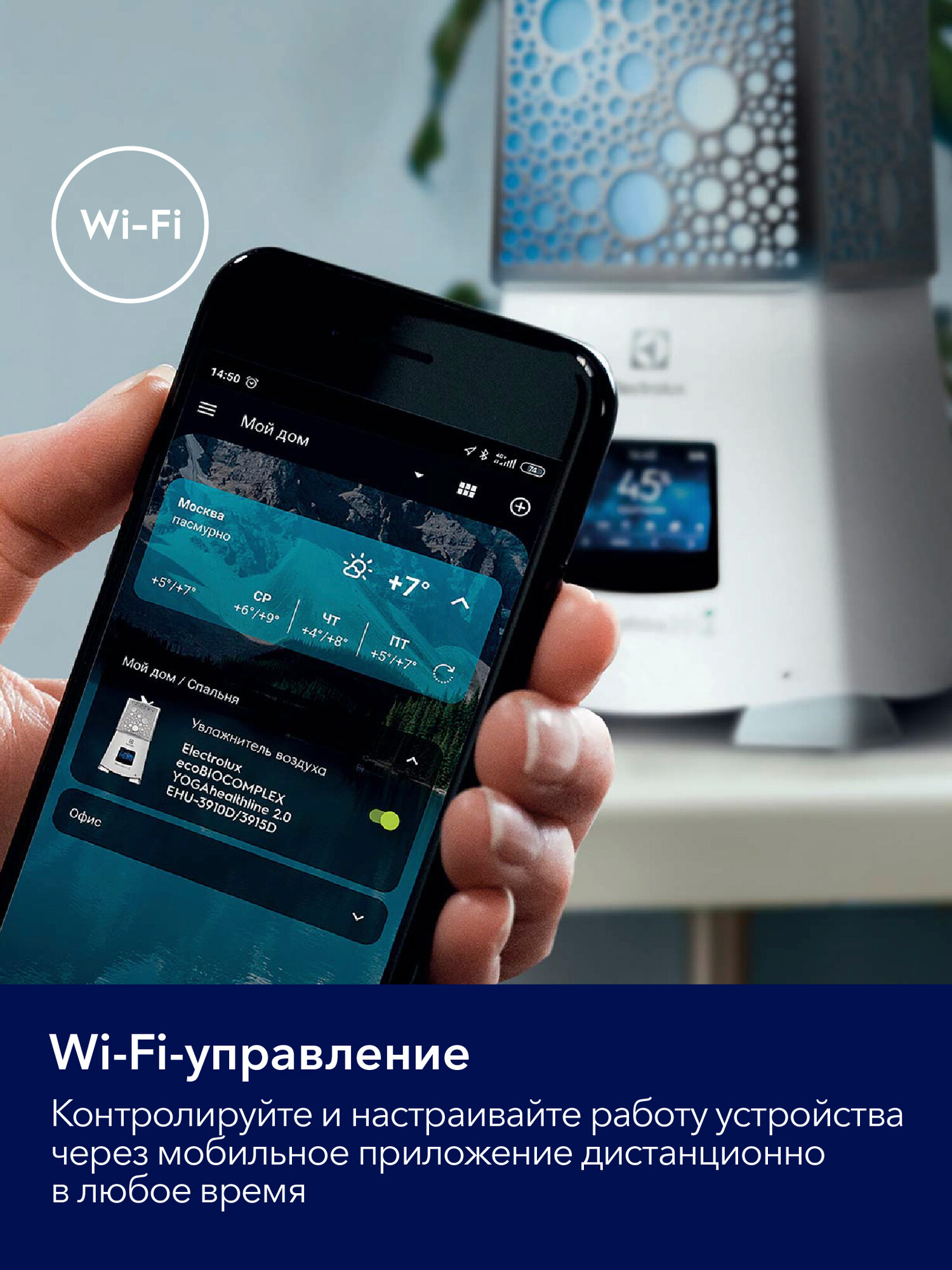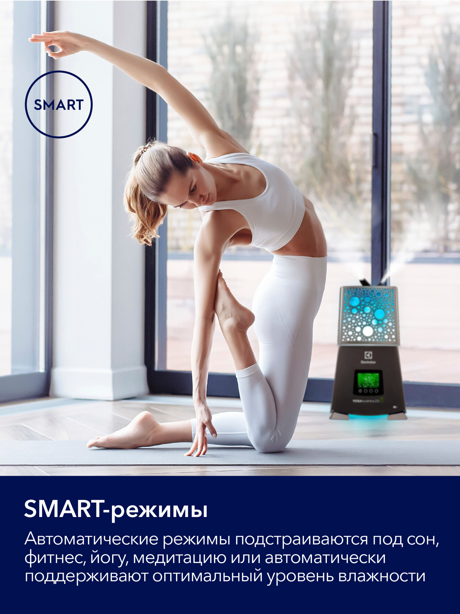 Увлажнитель - ecoBIOCOMPLEX YOGAhealthline 2.0 – продукт, способный создавать комфортные климатические условия для поддержания здоровья всех членов семьи, а также быть помощником и тренером при выполнении упражнений во время занятий фитнесом и практиками йога. EHU-3910D/3915D YOGAhealthline подходит для сохранения оптимальной влажности воздуха в квартире площадью до 65 м² на протяжении 24 ч в сутки. Высокую производительность обеспечивает мембрана последнего поколения NanoActive. Вместительный бак объемом 9,4 л позволяет заливать воду всего 1 раз в сутки