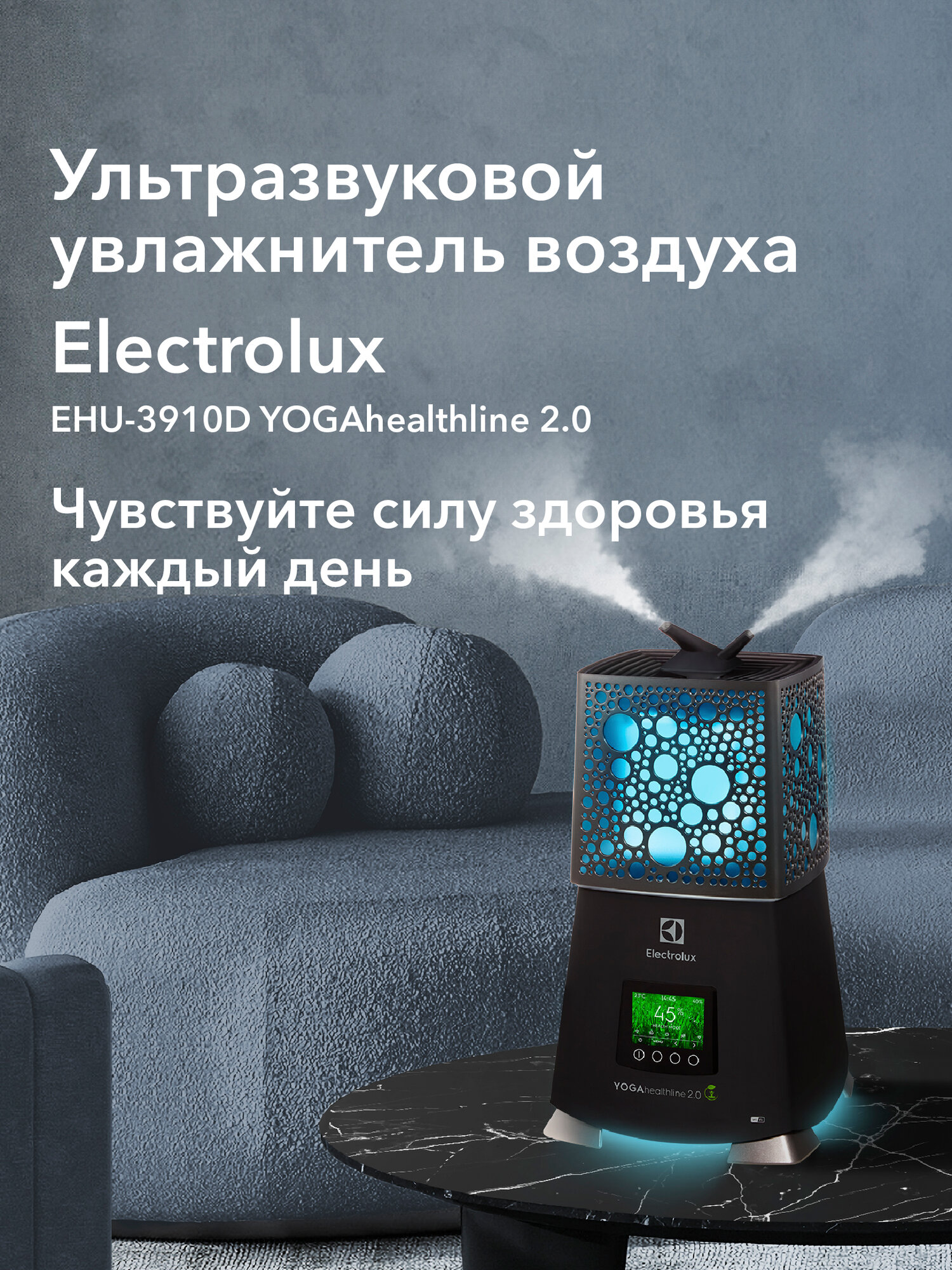 Увлажнитель ультразвуковой Electrolux черный 550 мл/ч стерилизация пара УФ-лампа пастеризация воды EHU-3910D YOGAhealthline 2.0