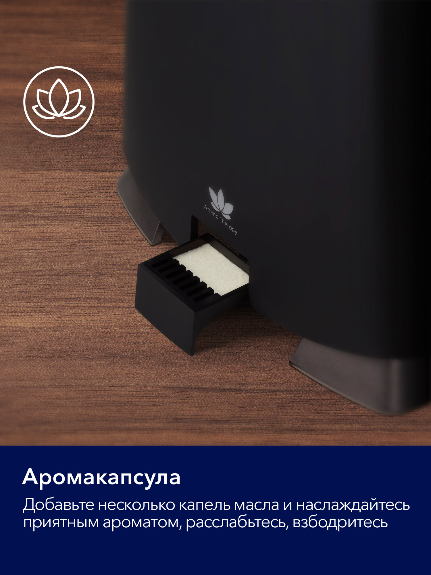 | Комплектация | Инструкция, Контейнер для ароматических масел, Увлажнитель воздуха, Фильтр-картридж для воды |