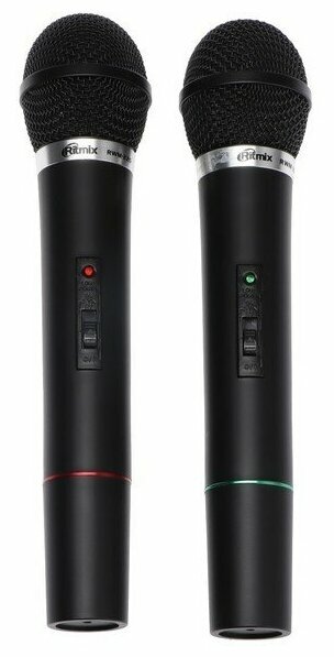 Ritmix - беспроводная микрофонная система. Данное устройство применяется, для вокала, переговоров, лекторами или инструкторами. Кардиоидная направленность не даст попасть в сигнал лишним шумам. Беспроводные микрофоны позволяют свободно перемещаться в небольших помещениях и свободно общаться с оппонентом или аудиторией. Микрофоны держат связь до 30 метров от приемника. работает в VHF-диапазоне на частоте 87,5-82 МГц.