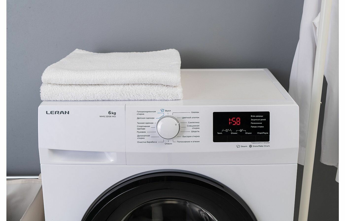 Автоматическая стиральная машина Leran WMS 33106WD имеет 15 режимов стирки, включая специальные программы для деликатных тканей, спортивной одежды, шерсти и других материалов.
