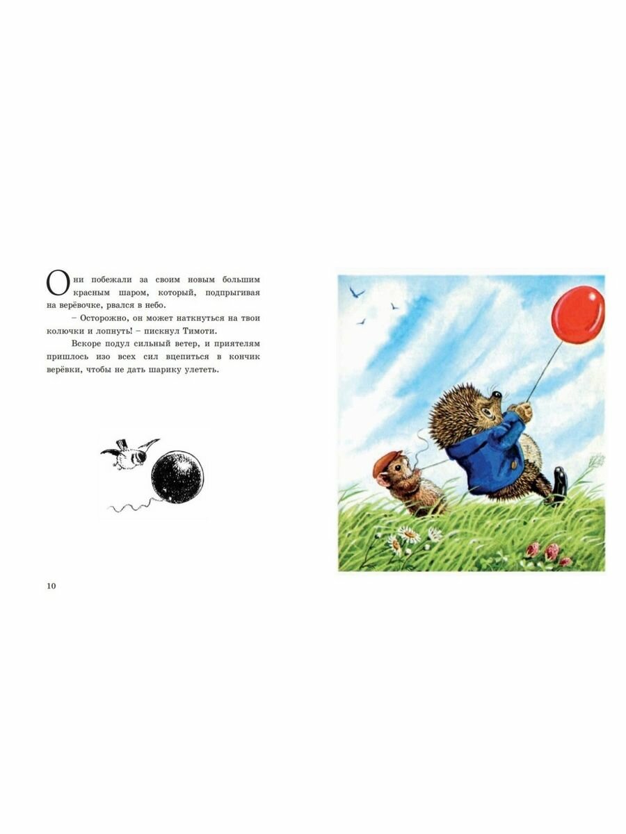 Ребенок обожает слушать эту книгу перед сном. Приключения мышонка и ёжика, если честно, и взрослого могут увлечь. Слог хороший, написано интересно. Несомненный плюс книги - наличие разных картинок, как цветных, так и чёрно-белых. Ребенок с удовольствием их рассматривает. Сама книга выполнена качественно, ее приятно держать в руках. С учётом того, что ребенок также любит полистать книгу, а она все ещё целая, то также стоит похвалить и типографию, которая печатала эту книгу.