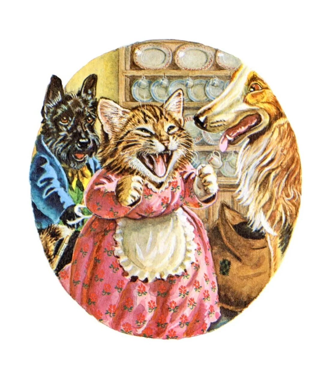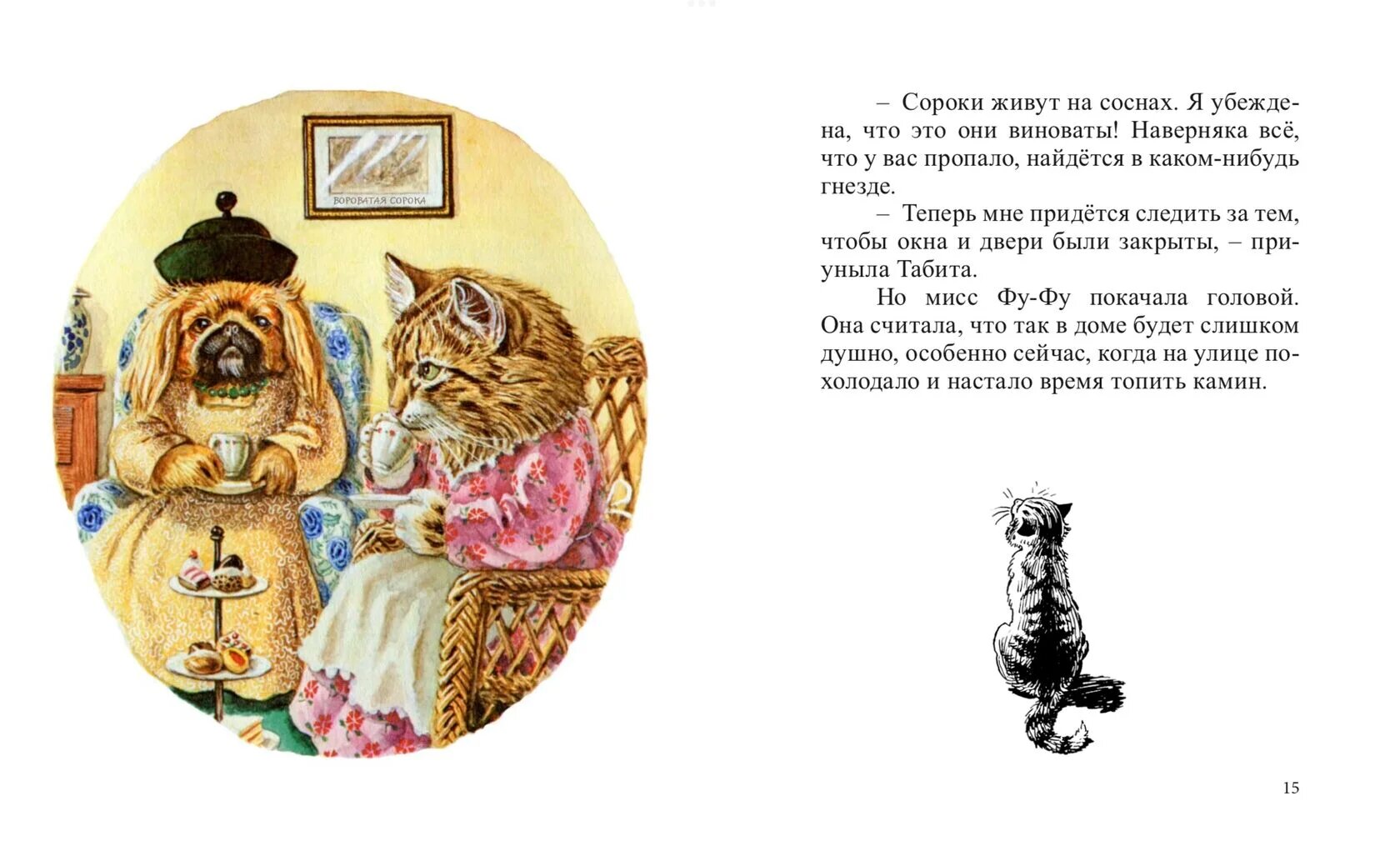 Это история про кошечку по имени Табита. В ней герои - животные, которые ходят на задних лапах, носят одежду, разговаривают и живут, как люди.