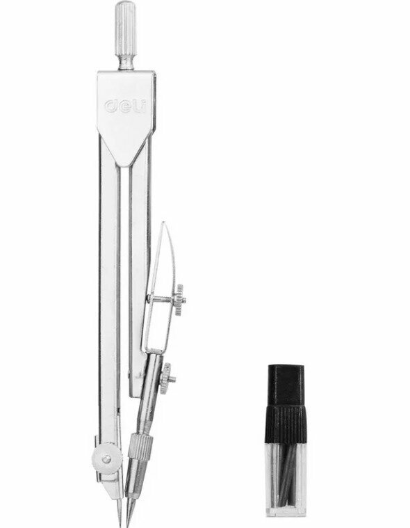 Циркуль Deli металл в компл.:набор грифелей E8601