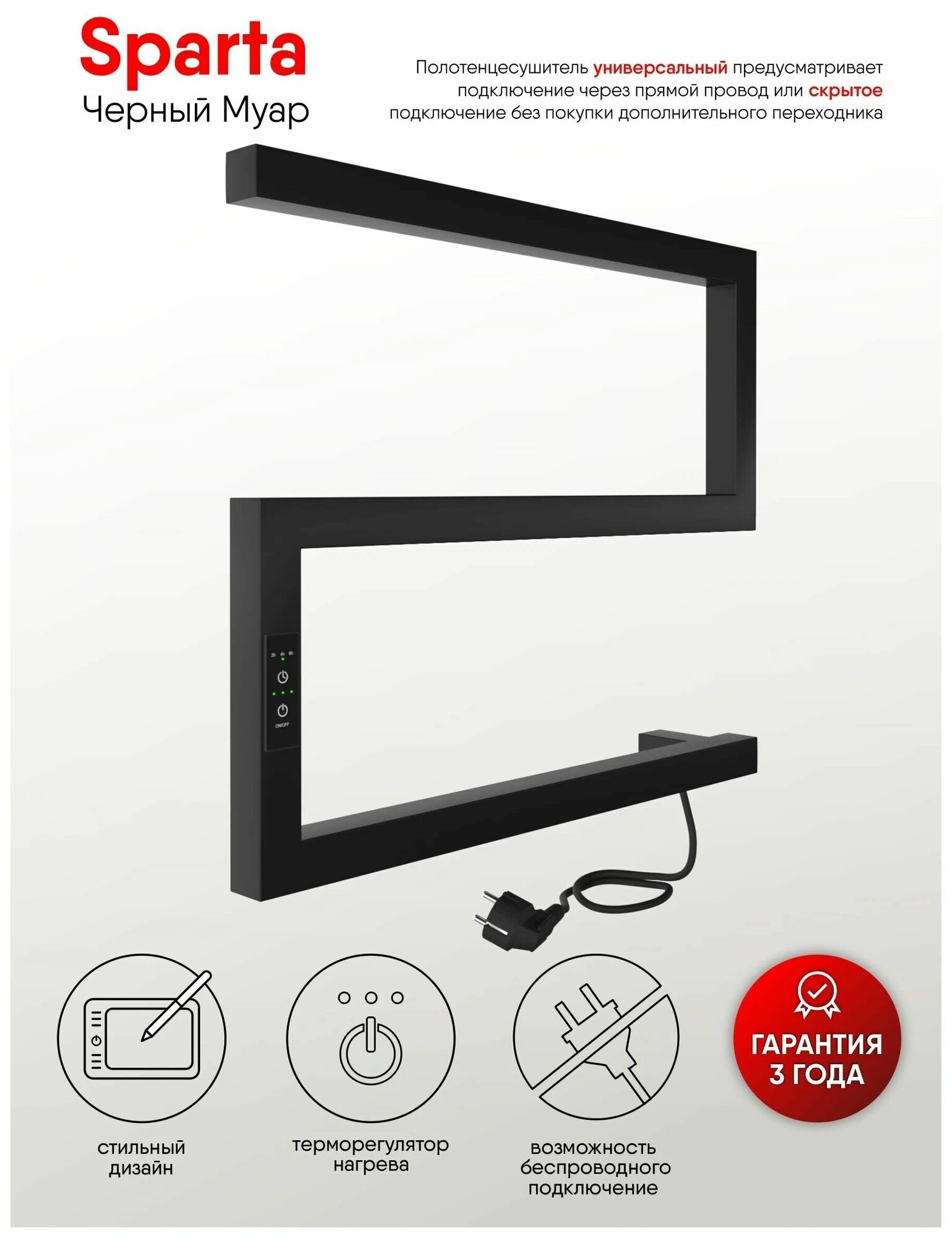 полотенцесушитель электрический INDIGO Sparta 400х500мм 61Вт таймер черный муар (DGS40-50BRRt) (размер: 43x50 см)