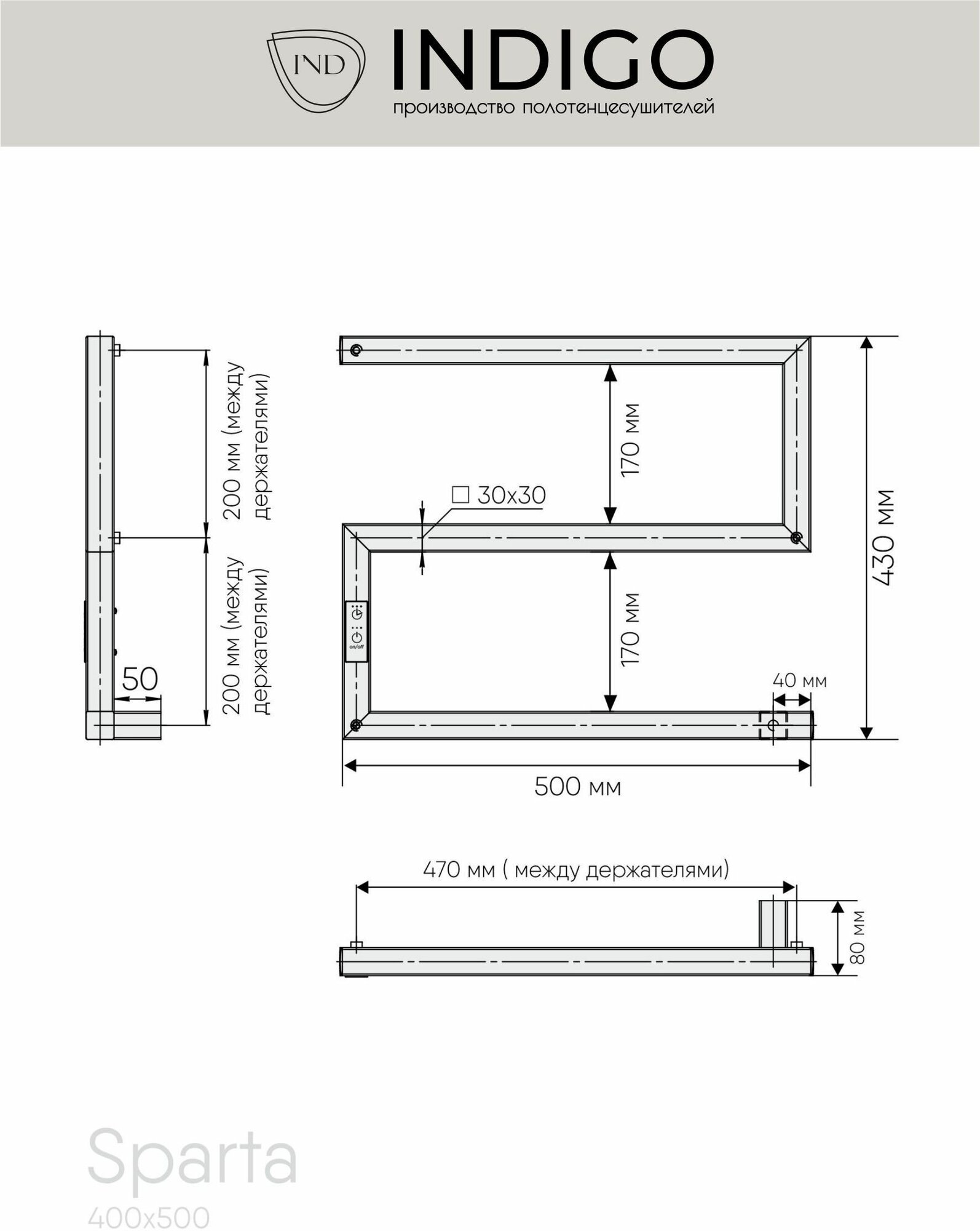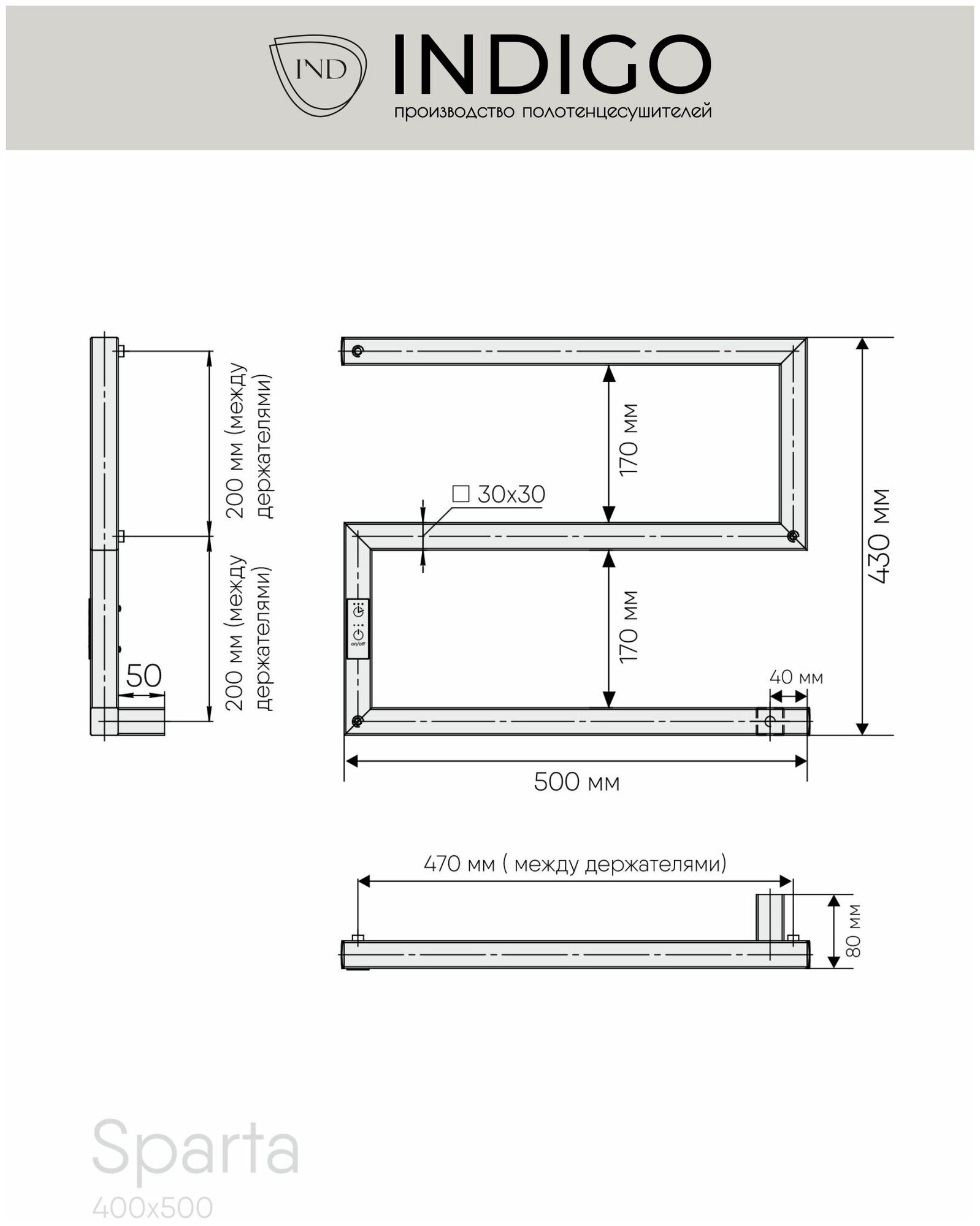 Полотенцесушитель электрический INDIGO Sparta в размере 400х500 (ВхШ) выбирают за его технологичность и универсальность. Модель имеет терморегулятор нагрева, у которого три режима: 40, 45, 50 градусов и таймер на отключение через 2, 4, 6 часов. Универсальность изделия предусматривает подключение через прямой провод или скрытое подключение без покупки дополнительного переходника. Длина прямого провода 1,2 метра. Изделие окрашено порошковой краской по специальной технологии. Полотенцесушитель относится к энергоэффективным изделиям, потребляемая мощность в данном размере 61 Вт. Специальная технология нагревательного кабеля защищает полотенцесушитель от перегрева, что влияет на длительные сроки службы. В комплектации идут 3 телескопических держателя, комплект монтажа и гарантийный паспорт. Полотенцесушитель INDIGO Sparta застрахован и имеет гарантию 3 года. Выбирая INDIGO вы получаете надежный продукт с гарантией качества от Российского производителя