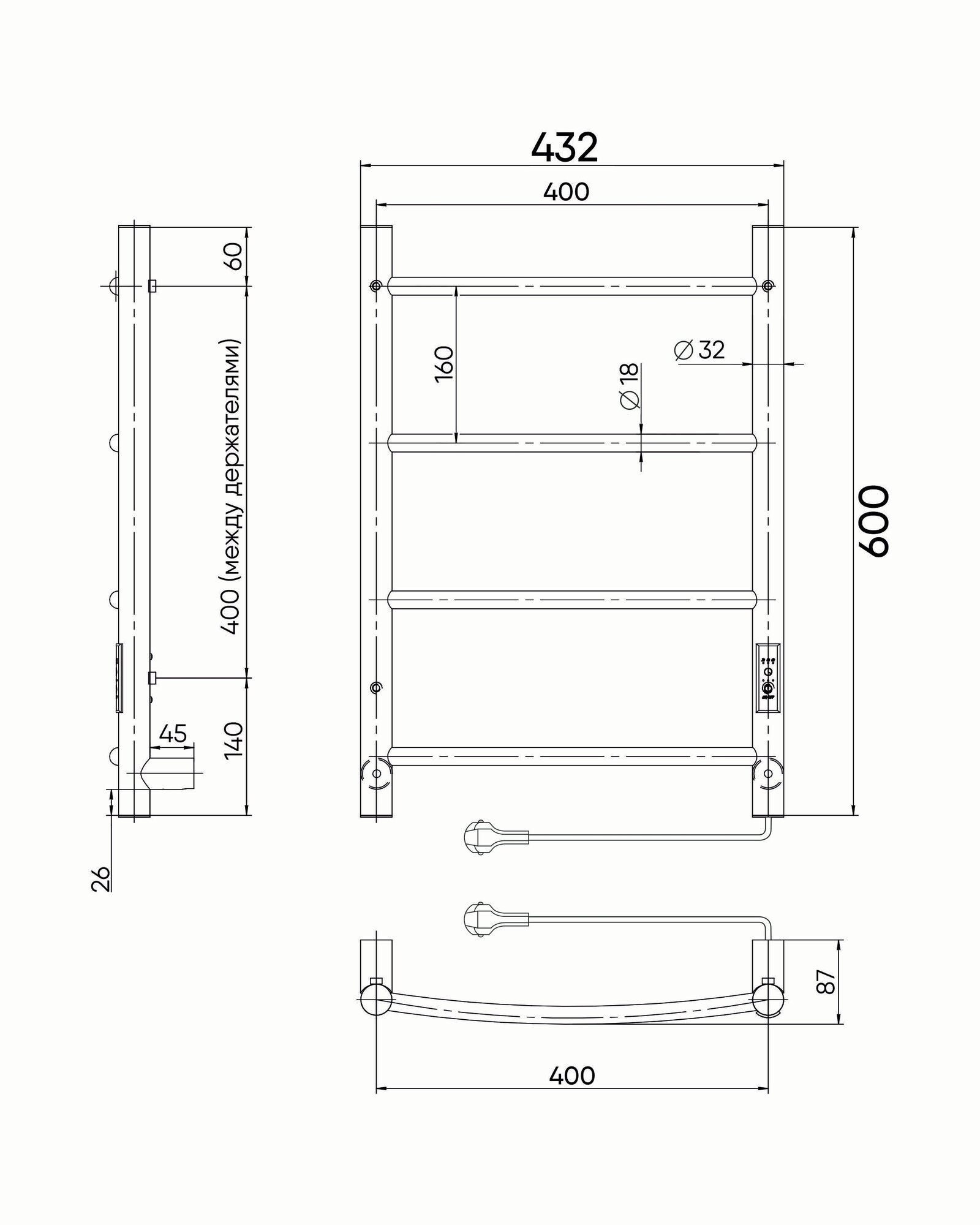 Полотенцесушитель электрический INDIGO Arc Lux с терморегулятором (таймером) создаст комфортную температуру в ванной комнате. С ним полотенца будут теплыми и сухими. Форма - лесенка дуга. Высота - 600 мм, ширина - 400 мм, глубина с держателями - 87 мм. Изделие выполнено из круглой трубы. Материал изделия - это полированная нержавеющая сталь AISI304 толщиной 2 мм c высокими антикоррозийными свойствами. Сталь гармонично сочетается с остальной сантехникой цвета хром. Благодаря мягким классическим формам электрополотенцесушитель прекрасно впишется в интерьер душевой комнаты, прихожей, гардеробной или балкона. Мощность — 55 Вт. При постоянной работе устройство потребляет энергии не больше лампочки. Панель управления находится на правой части стойки. Регулятор нагрева имеет три режима - 40, 45, 50 градусов, а таймер можно настроить на отключение через 2, 4, 6 часов. Включать сушилку настенную можно по необходимости, но создана она для круглосуточной работы. Класс защиты IP44 гарантирует безопасность использования во влажной среде и защиту от брызг, а надёжная гидроизоляция и грамотно рассчитанное сечение нагревательного элемента не дают изделию перегреваться. Нагревательный кабель "сухой ТЭН" установлен по всей длине металлического корпуса. Поверхность нагревается в течение получаса до максимума в 55°С. Подключение осуществляется двумя способами: скрытое подключение к электропроводке через модуль скрытого подключения в стену или прямым электропроводом длиной 1,1 метра в розетку. Модуль скрытого монтажа уже в сборе. Провод с вилкой легко переставляется на необходимую сторону, благодаря наличию клемм в обеих частях стойки. Электрический змеевик, в отличие от водяного, никогда не протечёт, не подвержен коррозии блуждающих токов, не зависит от отопительных сезонов и наличия горячего водоснабжения. Для простоты установки полотенцесушитель для белья настенный полностью укомплектована. В комплектацию входят: 4 телескопических держателя, компенсирующие неровности стен, комплект монтажа (дюбели и саморезы), электрошнур с вилкой, инструкция с гарантийным талоном на 3 года. Срок службы изделия не ограничен. Для безопасной транспортировки прибор упаковывается в полиэтилен и пятислойную картонную коробку. Ассортимент интернет-магазина сантехники IND (INDIGO) насчитывает 300+ моделей в 9 цветах и различных размерах. Выбирая INDIGO вы получаете надежный продукт с гарантией качества Российского производителя.