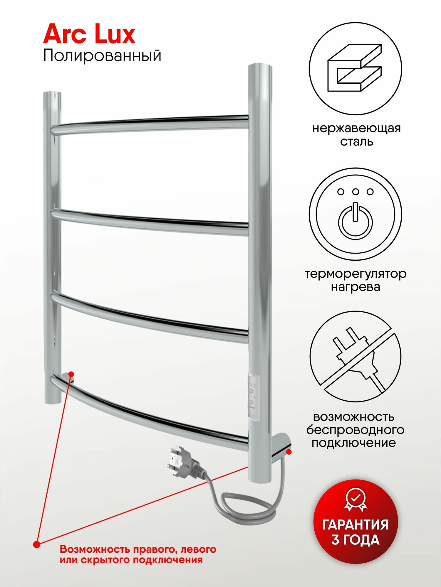 полотенцесушитель электрический INDIGO Arc Lux 600х400мм 60Вт таймер хром Arc Lux 40x60 LCALE60-40Rt электрический, серебристый (размер: 40x60 см)