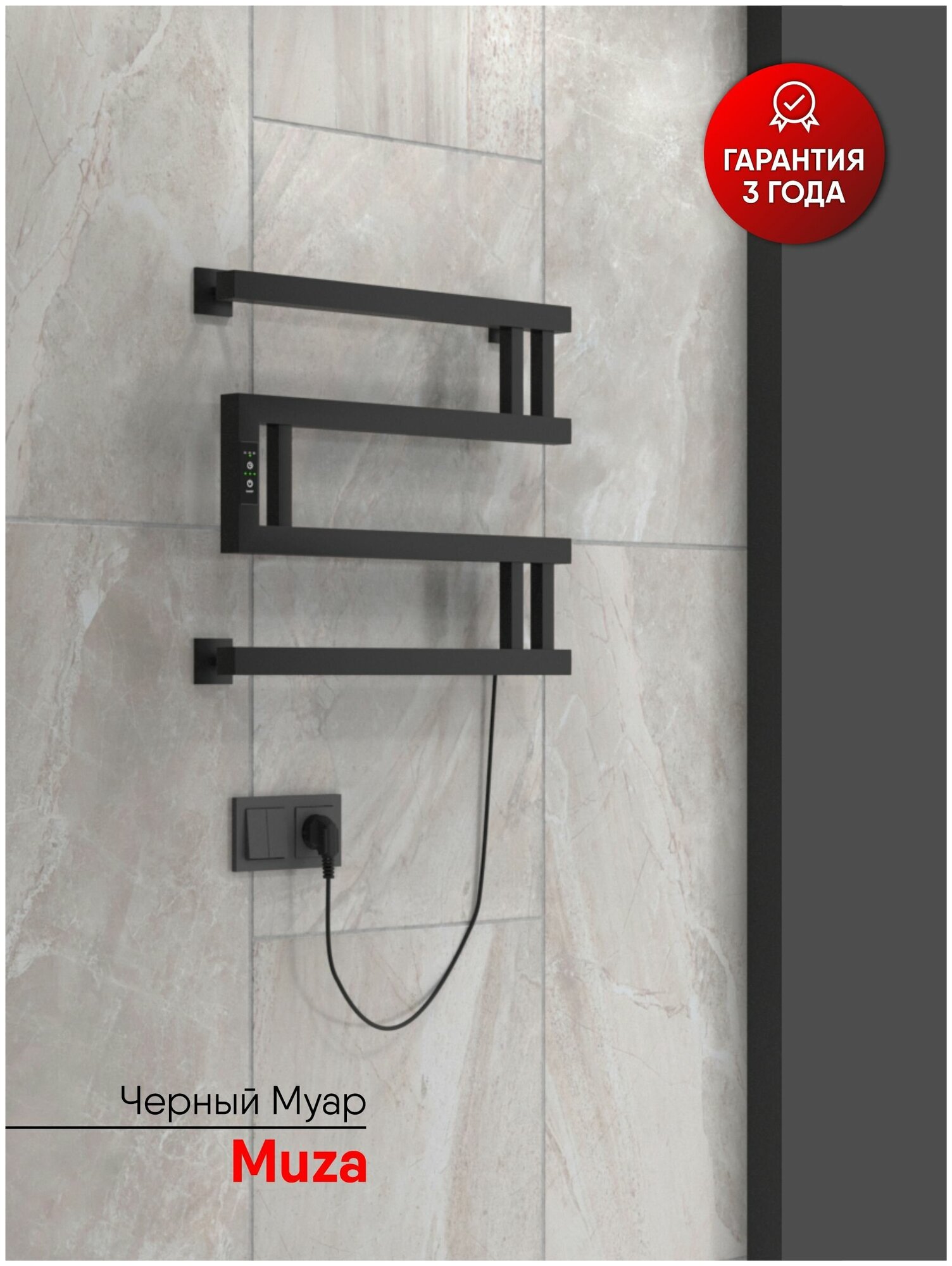 полотенцесушитель электрический INDIGO Muza 400х500мм 64Вт таймер черный муар (DGM40-50BRRt) (размер: 43x50 см)