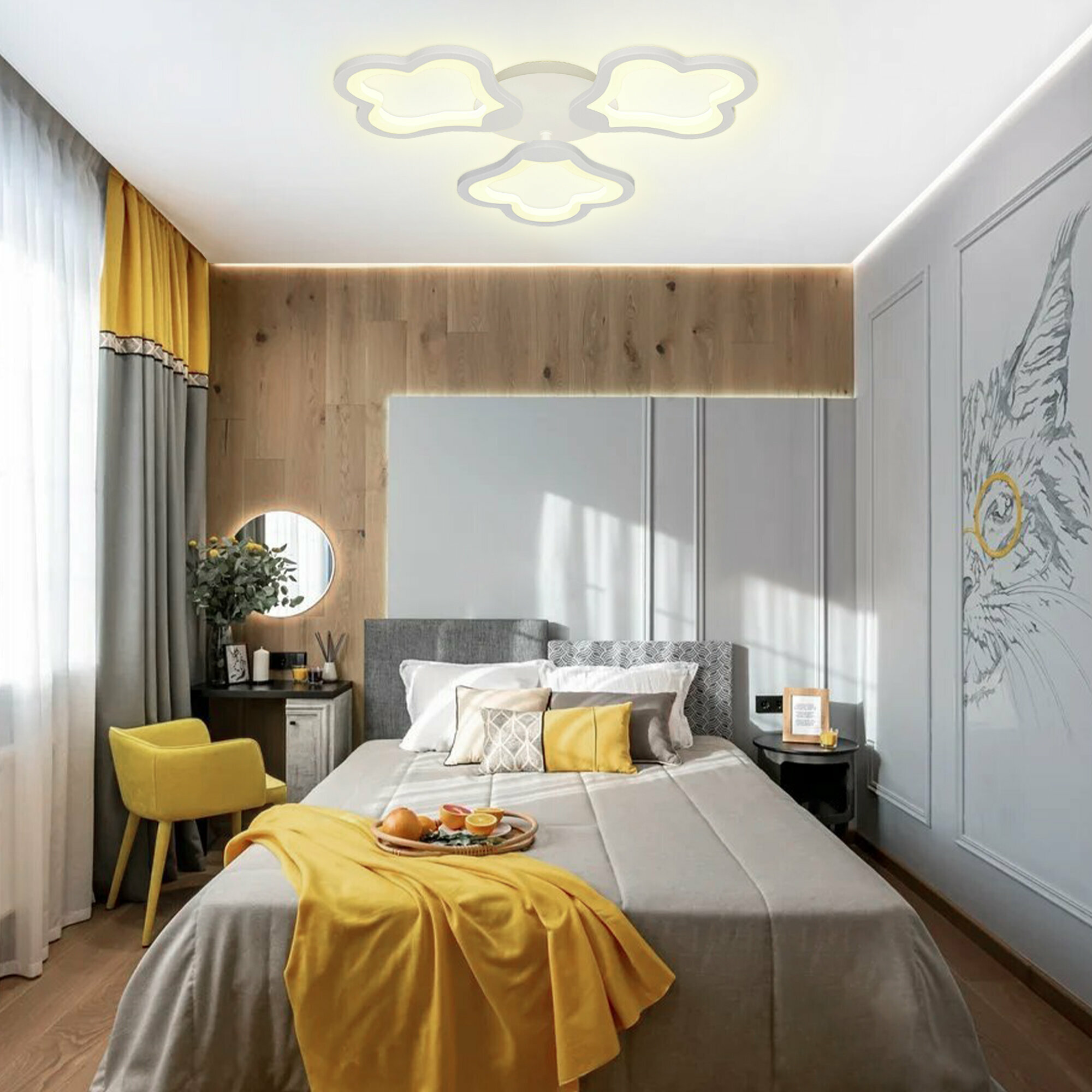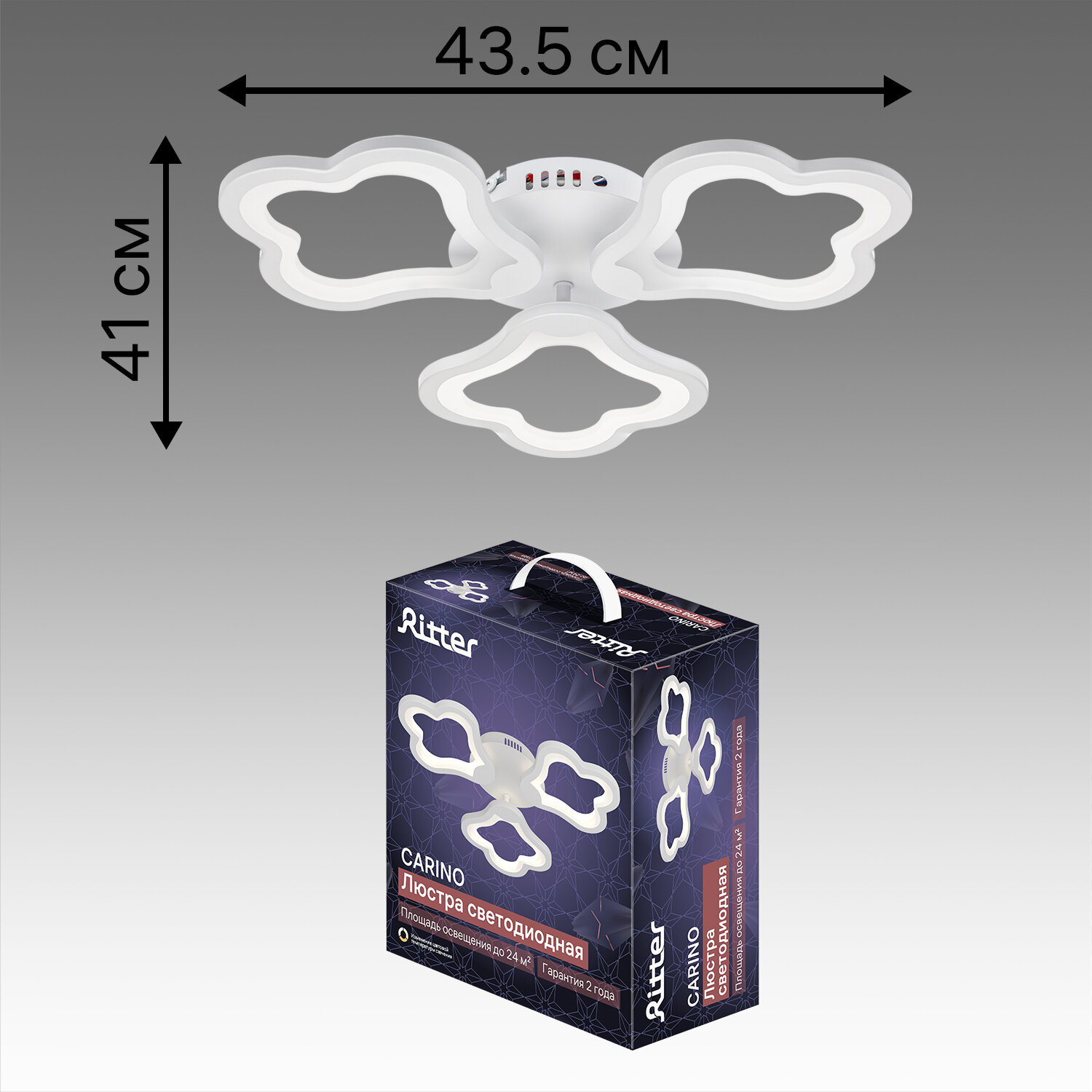 Потолочная светодиодная люстра Ritter Carino предназначена для основного освещения жилых помещений площадью до 24 кв. м. Максимальной мощности ламп 48 Вт достаточно для освещения спальни, столовой, кухни, гостиной, коридора, зала, прихожей, детской игровой комнаты, кабинета, лоджии, гардеробной, компактного офиса.Светодиодная подвесная люстра Carino выполнена в современном стиле, который удачно дополнит большинство популярных интерьеров: лофт, модерн, классика, арт-деко, сканди, хай-тек, техно.Люстра представлена в белом цвете, имеет форму четырех лепестков изогнутой формы, прикрепленных на металлическое основание. Главным отличием светодиодной люстры Carino является возможность настройки яркости освещения от 20% до 100%. Интенсивность освещения можно регулировать, исходя из обстановки и времени суток — использовать как ночник, как основной источник света или дополнительный.Потолочная светодиодная люстра Carino имеет мягкий равномерный свет со световым потоком 3840 люменов и настраиваемой температурой цвета от 2700 до 6500 кельвинов — такое освещение благоприятно для глаз человека, так как по характеристикам максимально приближено к естественному. В потолочной светодиодной люстре Carino используется технология LED — вместо ламп накаливания используются встроенные светодиодные элементы.Это дает преимуществ при эксплуатации: а) долгий срок эксплуатации светодиодных ламп до 30000 часов при бытовом использовании (около 15 лет); б) экономичное энергопотребление; в) отсутствие нагрева корпуса люстры; г) регулируемая яркость освещения (при наличии данной настройки в люстре); д) стойкость к колебаниям напряжения (лампы не перегорают от перепадов).Потолочную светодиодную люстру Carino уместно использовать в качестве подарка на новоселье, день рождения, свадьбу, юбилей, 8 марта, день учителя, 23 февраля, день матери, или просто без повода. Люстру можно подарить маме, сестре, любимому человеку, бабушке, жене, друзьям, детям, коллеге, учителю или классному руководителю. Светодиодная люстра Carino легко монтируется на основные виды потолков: натяжные тканевые и виниловые, деревянные подшивные, стандартные бетонные, пенополистирольные, гипсокартонные, панельные, офисные «Армстронг» .Потолочная люстра упакована в фирменный короб из прочного картона, в комплект также входит паспорт изделия (инструкция на русском языке по эксплуатации и установке), монтажный набор (планка, саморезы).