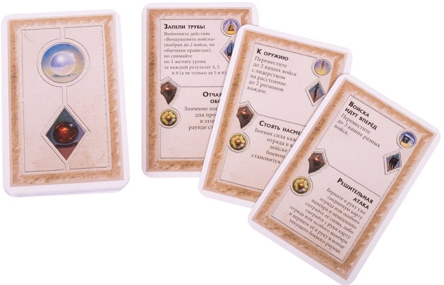 - Размер карт: 56x87 мм (рекомендуются протекторы из данного размера, 92 шт.)