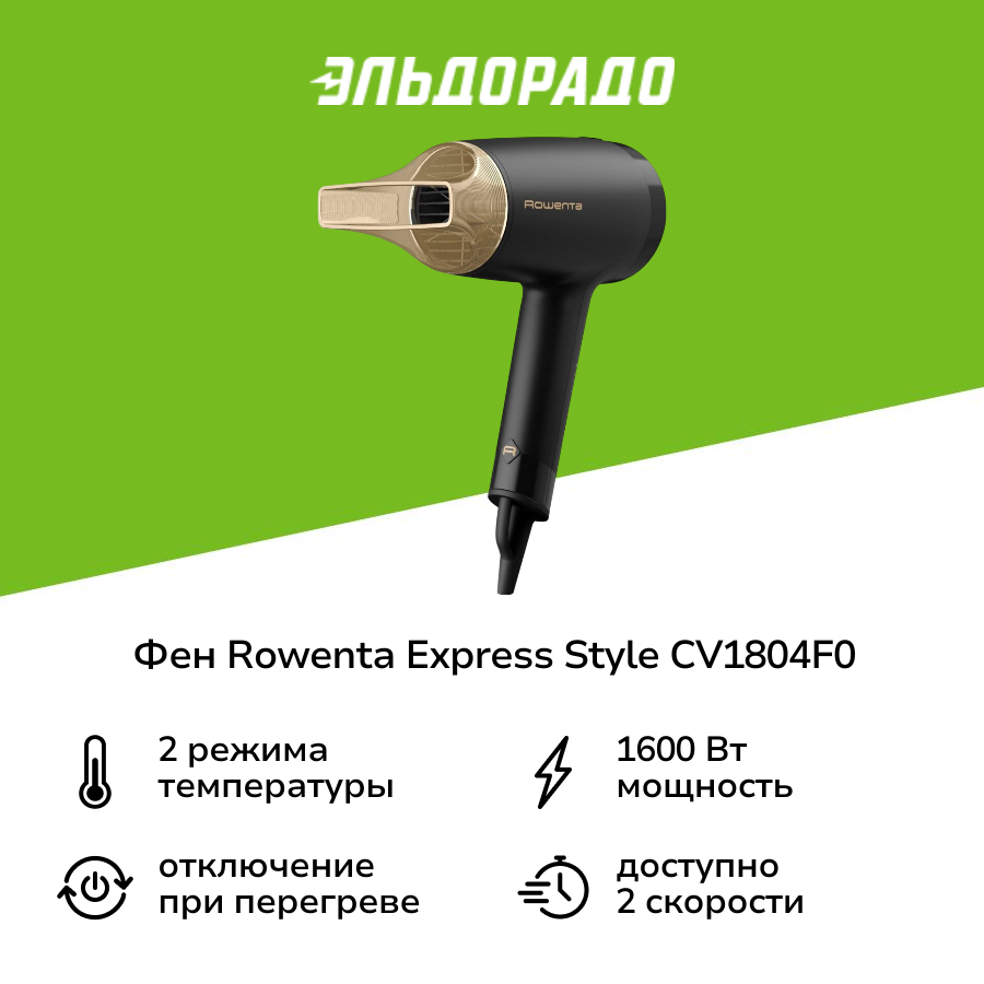 На сегодняшний день товар «Фен для волос Rowenta Express Style CV1804F0» можно купить с кешбеком в 3 магазинах: Tefal, Эльдорадо, М.Видео