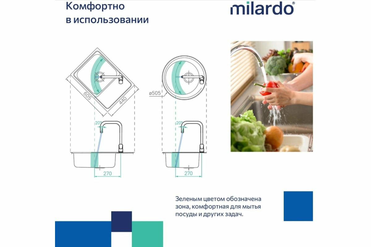 Коллекция Poli создана под проекты современных интерьеров. Геометрическая форма излива этой модели лучше всего подойдет к мойкам прямоугольных и квадратных форм. Корпус смесителя Poli выполнен из современного полимерного сплава. Отличить такой смеситель для кухни легко по небольшому весу. А вот найти разницу в эксплуатационных характеристиках под силу только эксперту. Материал экологичен, не разрушается под воздействием хлора и солей. Пластик обладает высокой термоустойчивостью и не нагревается при эксплуатации – даже самые маленькие члены семьи надежно защищены от случайных ожогов. Гибкая подводка и крепеж идут в комплекте. • Качественный механизм смешивания воды смесителя Milardo рассчитан на более чем 70 000 циклов работы – это не менее 15 лет эксплуатации семьей из трех человек. • Оптимальная толщина никель-хромового покрытия защищает смеситель от образования трещин и сколов, продлевает срок его службы. • Гарантия на смеситель для раковины Milardo – 5 лет, на картридж – 3 года.