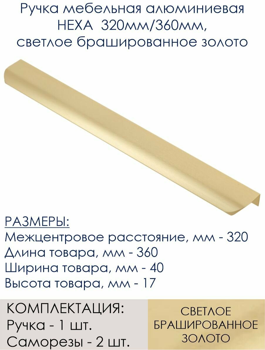 Ручка мебельная алюминиевая HEXA 320мм/360мм светлое брашированное золото GTV (UA-HEXA-320-22)