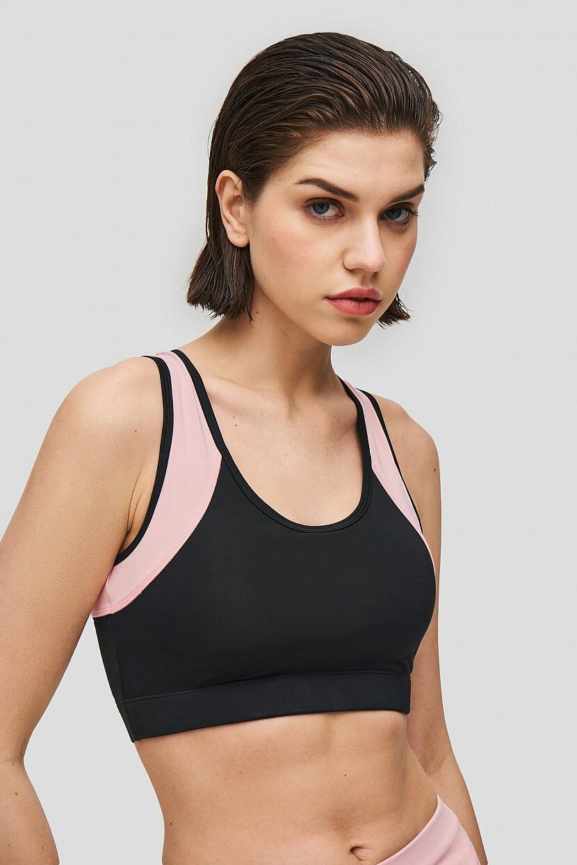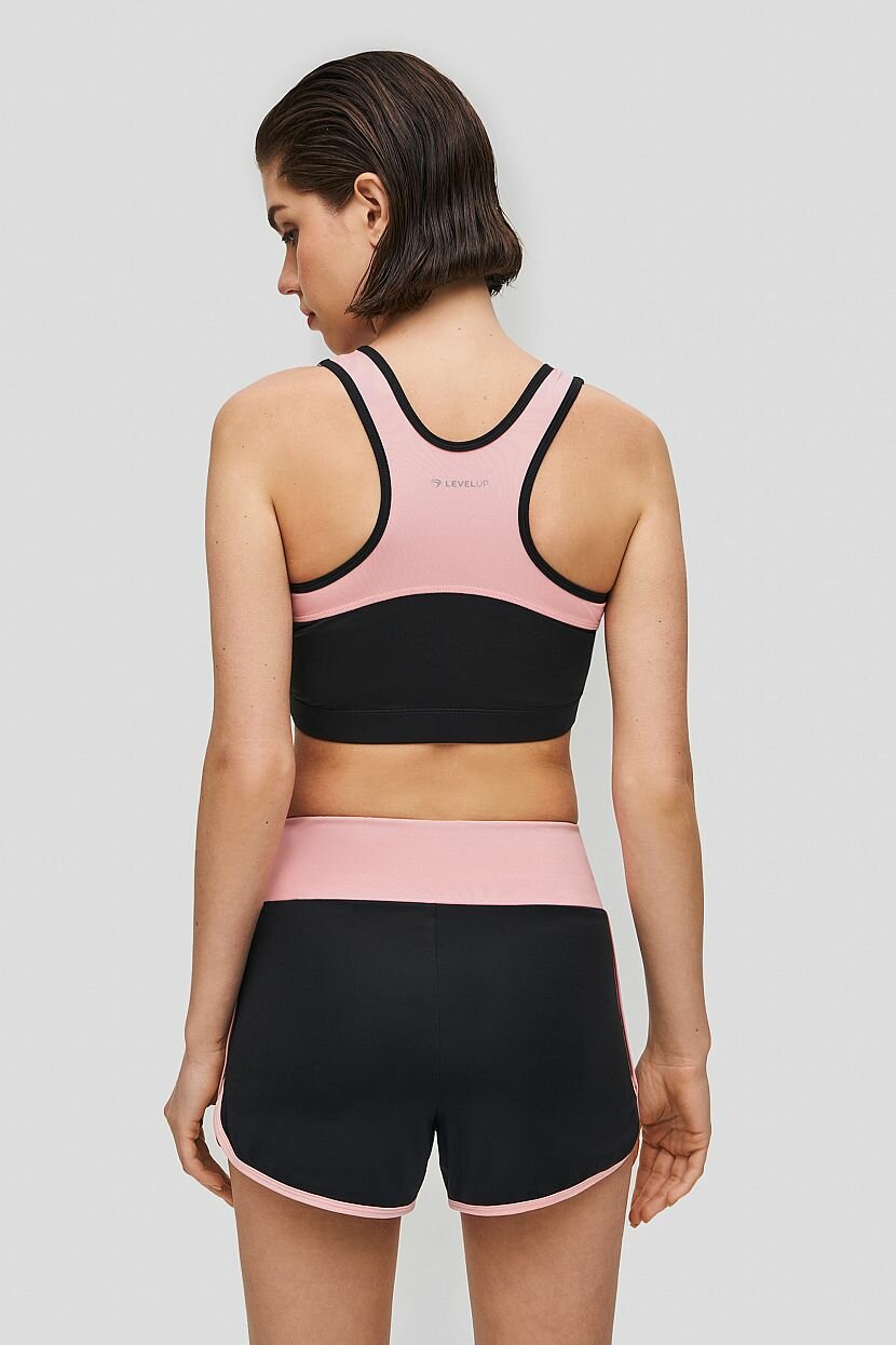 Модный топ-бра разработан с учетом всех потребностей стильных спортсменок. Крой спинки-борцовки в сочетании со съёмными чашечками-вкладышами оказывает мягкую поддержку груди. Плавные линии контрастной отделки повторяют формы тела и прорисовывают стройный силуэт. Кроп-топ можно комбинировать с леггинсами и шортами из аналогичного материала, представленными в нашей спортивной коллекции.