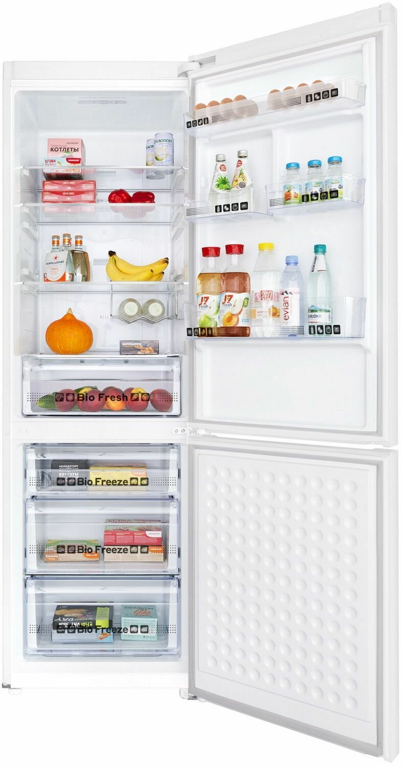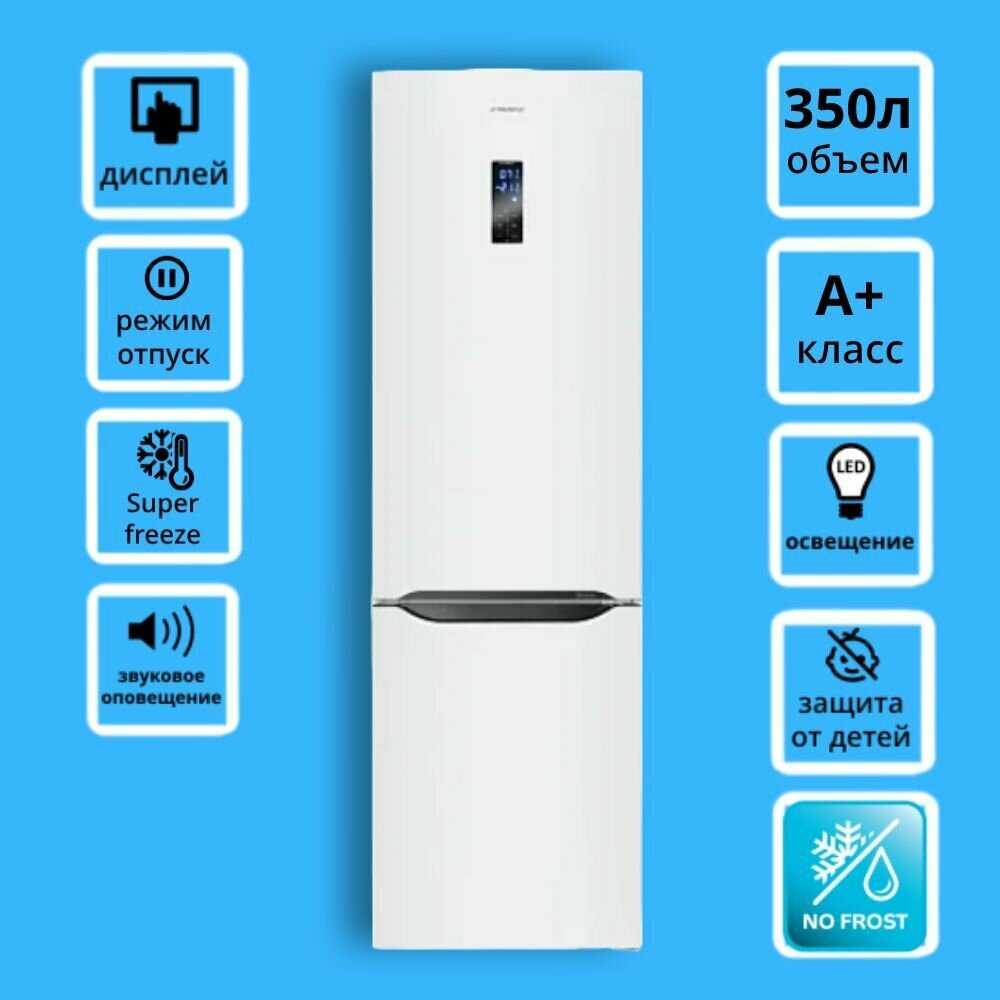 С общим объемом 350 литров вы получите достаточно места для всех своих продуктов. Холодильная камера объемом 252 литра предлагает просторное распределение полок и отделений для удобного размещения свежих овощей, фруктов или готовых блюд. Морозильная камера емкостью 98 литров имеет минимальную температуру -18°C и способна замораживать до 4.5 кг продукции за сутки.