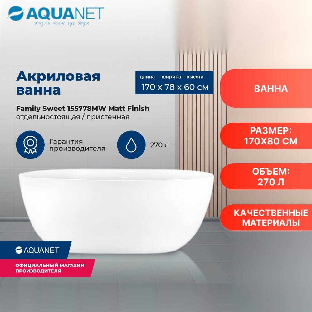 На сегодняшний день товар «Акриловая ванна Aquanet Family 170х78 155778MW» можно купить с кешбеком в 2 магазинах: Santehnika-room, dushevoi