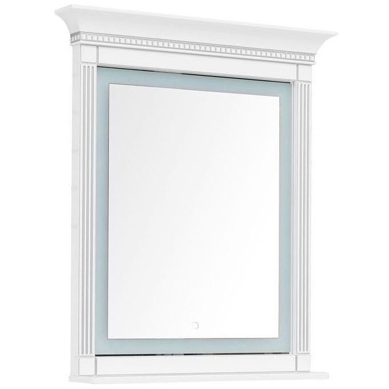 Зеркало для ванной Aquanet Селена 82.4 00201646. Форма: прямоугольная. Функции: Подсветка, Сенсорный выключатель. В раме: да. Покрытие: краска, глянец. Зеркало с эффектным патинированием серебром, с живописными украшениями в виде искусной фрезеровки и подобием капители, венчающих верхнюю часть изделия, как на античных колоннах, впечатляет с первого взгляда. Зеркало имеет встроенную LED-подсветку по периметру с сенсорным выключателем. Рамка шириной 90 см, в которую обрамлено зеркало, снабжена декоративными элементами и имеет небольшую полочку