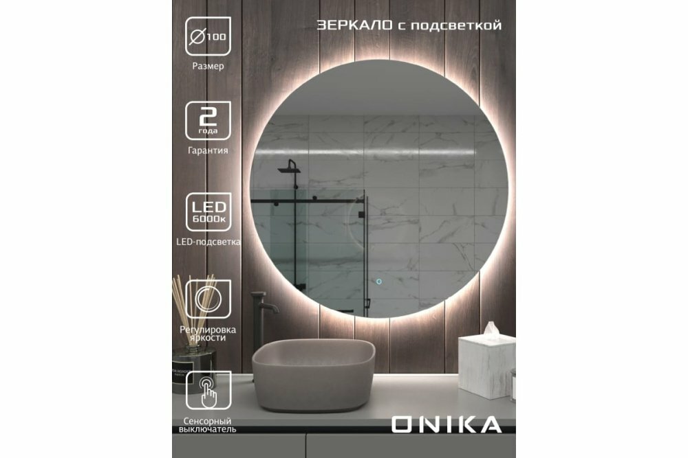 Onika Сола - круглое зеркало 90 см для ванной комнаты с LED-подсветкой, регулировкой интенсивности и сенсорным выключателем. Яркость LED-подсветки регулируется при помощи встроенного диммера и сенсорной кнопки на поверхности зеркала. Зеркало подходит для эксплуатации в любых типах помещений, в том числе в помещениях с повышенной влажностью. Работает при напряжении в 12V (с прямым подключением к электросети 220 В), что гарантирует полную безопасность эксплуатации зеркала. Благодаря низкому энергопотреблению, подсветка прослужит непрерывно не менее 50000 часов. Зеркальное полотно толщиной 4 мм создано на основе серебряной амальгамы, которая обеспечивает качественное изображение, влагостойкость и долгий срок эксплуатации. Края зеркала обработаны алмазными дисками для безопасного использования. Зеркало с LED подсветкой для ванной Onika Сола отлично подойдет к любому дизайну помещения, расширит пространство благодаря парящему эффекту и будет служить долгие годы. Крепежная фурнитура в комплекте. Размер зеркала 90*2*90 см. Гарантия на изделие 2 года. Мебель для ванных комнат ONIKA (Оника) разрабатывается и производится в России, на одном из крупнейших заводов с самым современным оборудованием. Продукция ONIKA идеальным образом сочетает в себе высокий уровень комфорта, неповторимую эстетику внешнего вида и отменное качество. Для просмотра всего ассортимента нажмите на логотип бренда справа, будем рады видеть вас в нашем магазине.
