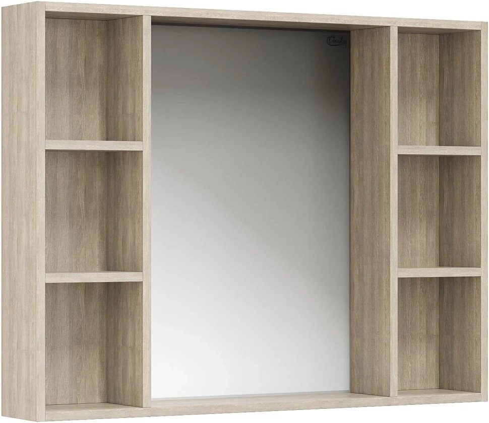 Зеркальный шкаф Onika тимбер 100 отражает современные тенденции в дизайне мебели для ванных комнат: минимализм с простыми и понятными формами, цвета дуба с роскошной текстурой, отсутствие лишних деталей. 6 открытых полок по бокам от зеркала обеспечивают быстрый доступ к часто используемым аксессуарам, место под зеркалом создано для косметических средств или декоративных элементов. Зеркальное полотно создано на основе серебряной амальгамы, которая обеспечивает качественное изображение, влагостойкость и долгий срок эксплуатации. Зеркальный шкаф выполнен из ЛДСП, устойчивой к механическим воздействиям, перепадам температур и высокой влажности. Подвесы для крепления шкафа к стене - в комплекте. Габариты изделия 100x14x70 см. Гарантия 2 года.