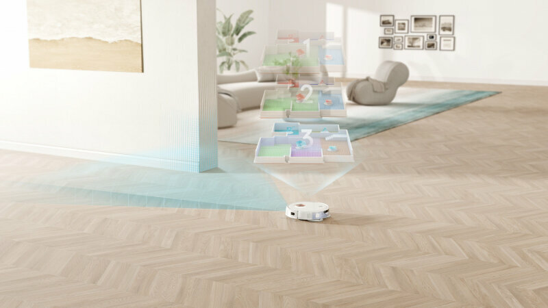 Пылесосит и моет шваброй одновременно. Непревзойденная мощность очистки. Сильная мощность всасывания 5100 Па подметает грязь, как ураган. Идентификация пола. Интеллектуальное определение типа пола для планирования правильного метода уборки. Интеллектуальное картографирование и навигационные карты, а также определение конкретных областей и путей для оптимальной траектории уборки. Полное управление приложениями. Запланируйте уборку и выберите конкретную область для уборки.