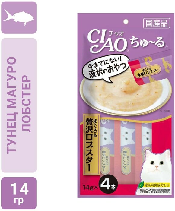 На сегодняшний день товар «INABA Ciao Churu Лакомство тунец магуро и лобстер д/кошек 56г (139.2139)» можно купить с кешбеком в 1 магазине: Яндекс.Маркет