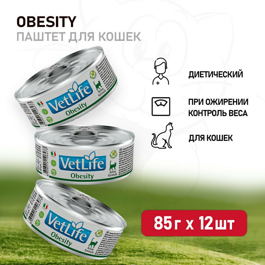 FARMINA Vet Life Cat Obesity Корм влаж.диета при ожирении паштет д/кошек конс.85г Farmina Pet Foods (00-00000506)