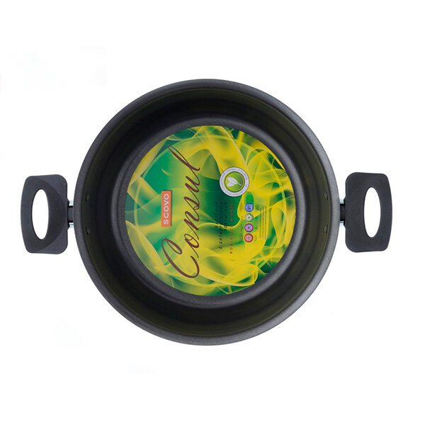 Кастрюля Scovo "Consul" объемом 4.5 л со стеклянной крышкой и две боковые ручки изготовлена из листового алюминия с антипригарным покрытием Quantum2 Whitford. Такое покрытие обеспечивает превосходные антипригарные свойства, поэтому при готовке можно почти не использовать подсолнечное масло. Посуда абсолютно безопасна для здоровья, так как не содержит PFOA, соединений кадмия и свинца. Корпус посуды толщиной 1, 8 мм обеспечивает быстрый и равномерный нагрев посуды. Удобные пластиковые ручки не нагреваются при приготовлении. Крепление ручек на заклепки обеспечивает дополнительную прочность и долговечность всего изделия. Крышка выполнена из жаропрочного стекла. Изделие можно использовать на газовых и электрических плитах. Можно мыть в посудомоечной машине. Подходит для газовых, электрических, стеклокерамических плит. Можно мыть в посудомоечной машине.