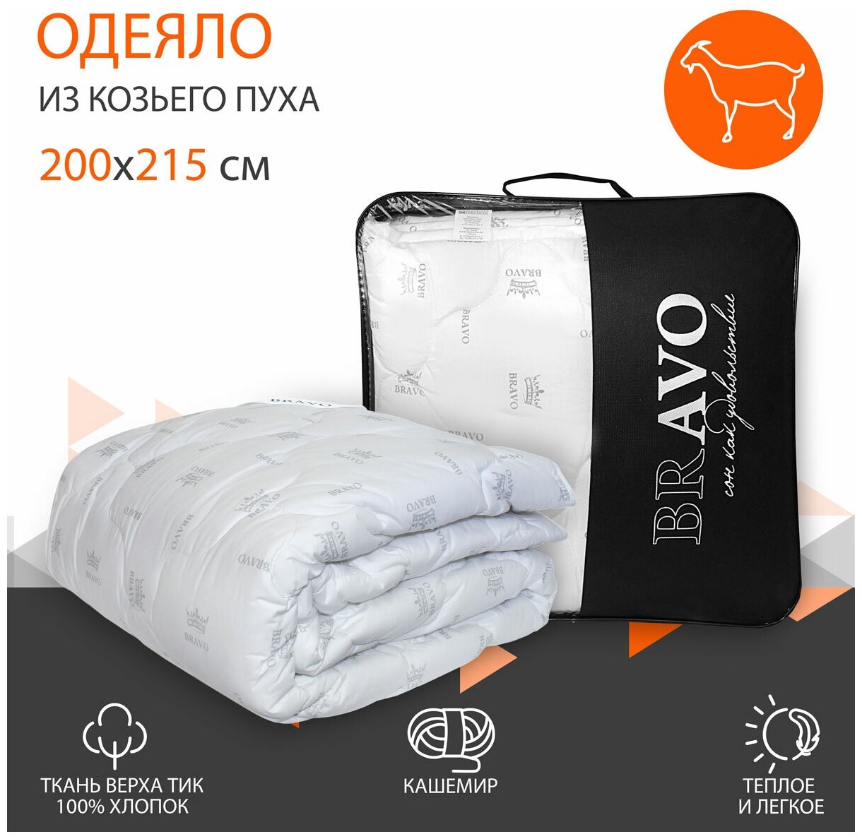 Одеяло BRAVO BRAVO Козий пух евро 200х215см (118331) (размер: евростандарт)
