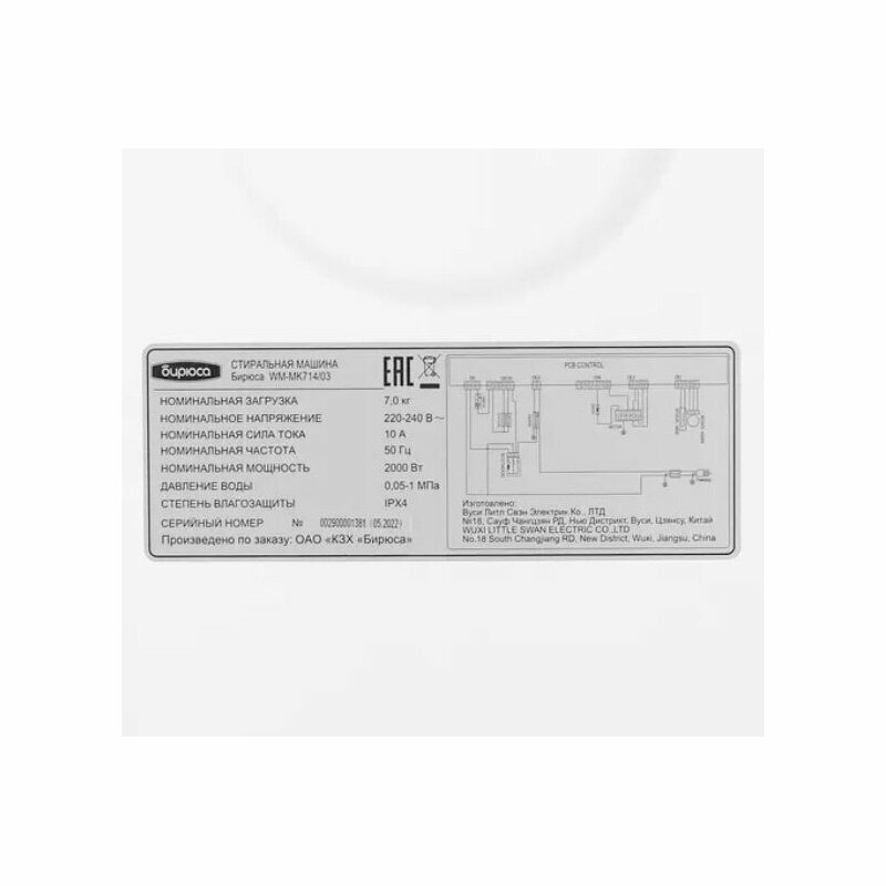 | Дополнительно * | Стиральная машина Бирюса WM-MK714/03 с фронтальной загрузкой на 7 кг приятно удивит своего обладателя функцией обработки паром, при помощи которой достигается не только кристальная чистота любимых предметов гардероба, но также обеспечивается эффективное устранение различных микроорганизмов. Запустив цикл очистки, вы вспомнили, что забыли положить в барабан те или иные вещи? В подобной ситуации придется как нельзя кстати возможность дозагрузки белья через специальное отверстие., Стиральная машина Бирюса WM-MK714/03 оснащена 16 программами, доступ к которым осуществляется посредством сенсорных элементов и поворотного переключателя. Значительным понижением уровня производимого шума и снижением затрат на энергоснабжение займется инверторный двигатель. Еще одна особенность модели заключается в барабане тщательно продуманной конструкции, не провоцирующей преждевременный износ и повреждение тканей. |