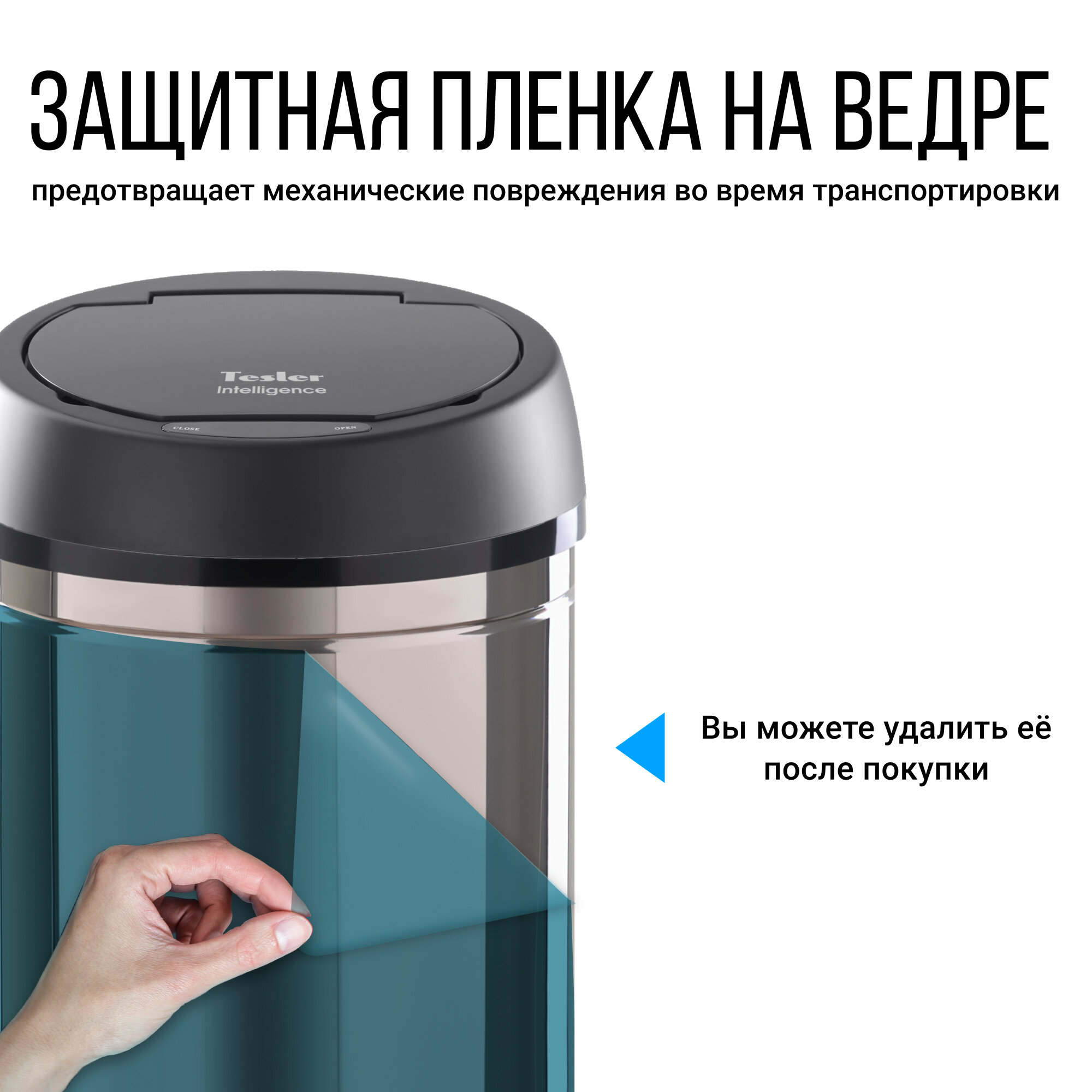 Отличительной особенностью мусорного ведра Tesler является наличие сенсорного датчика, который самостоятельно открывает крышку мусоросборника при поднесении руки на расстояние 10-15 см от него. Теперь не нужно прикасаться к ведру, чтобы выкинуть мусор, и ваши руки останутся чистыми. Если вы забыли закрыть крышку - через 5 секунд она автоматически закроется сама.
