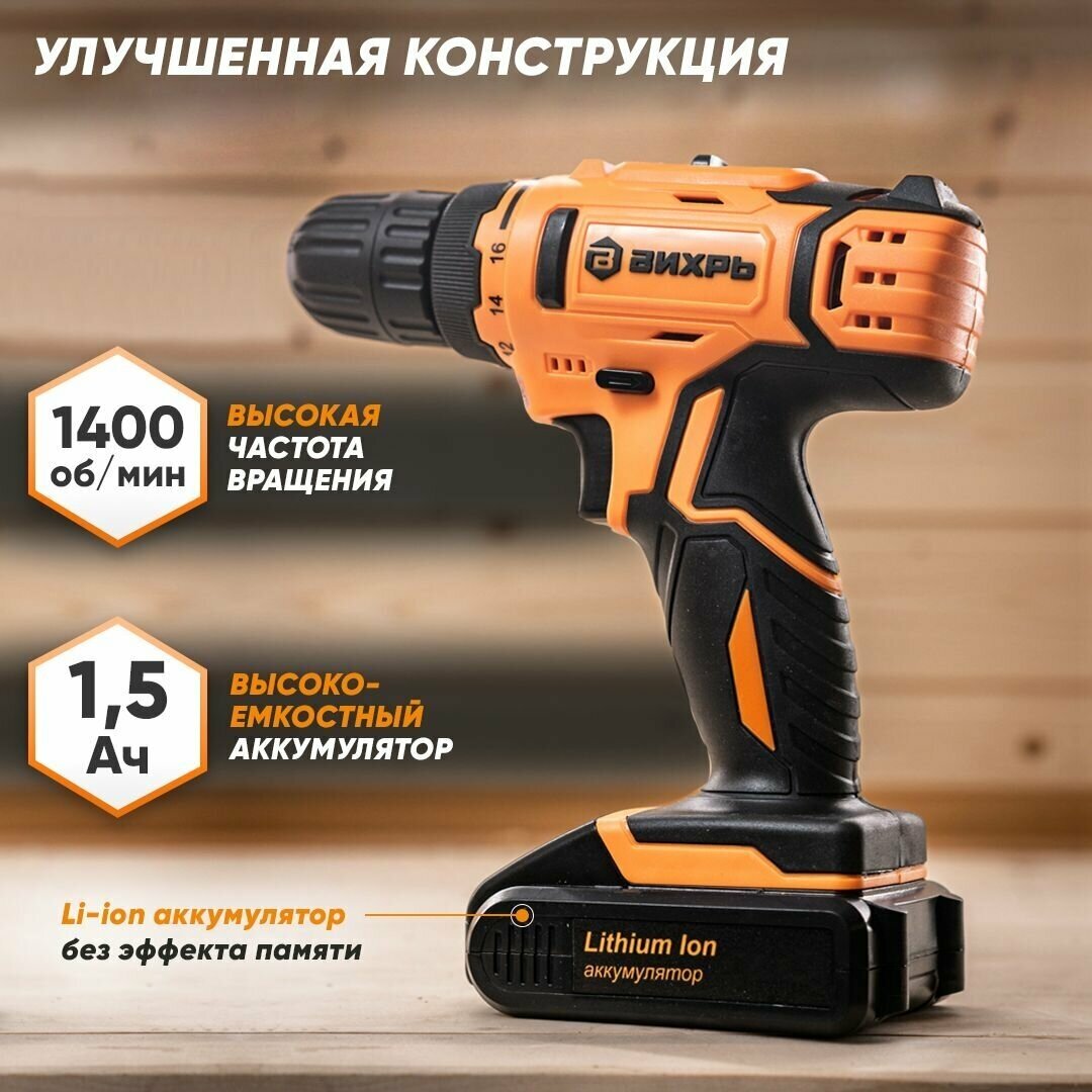 Дрель-шуруповерт Вихрь , патрон: быстрозажимной, питание от аккумулятора Li-Ion 20В, (кейс в комплекте) (72/14/36)