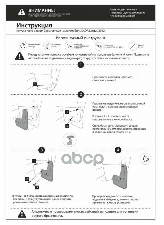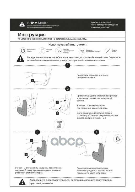 | Комплектация | 2 брызговика, крепеж, инструкция, упаковка |
