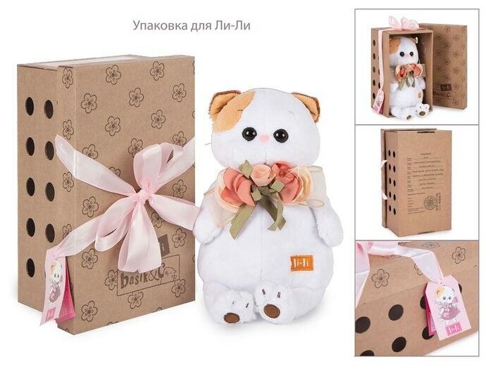 Обворожительная кошечка Ли-Ли станет приятным и запоминающимся подарком для девочки. На Ли-Ли яркое летнее платье с крылышками, нижней юбкой из сеточки и пояском-бантиком на талии из атласной ленты. На ушке у Ли-Ли бантик цвета фуксии в белый горошек. Игрушка поставляется в закрытой подарочной коробке, подвязанной атласными лентами.