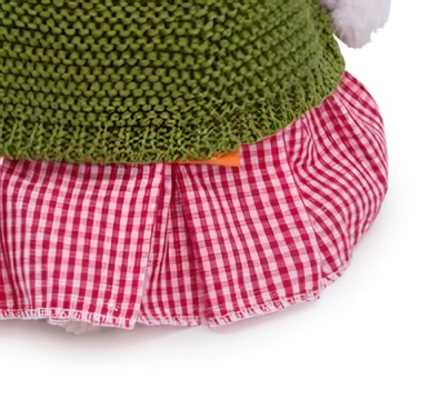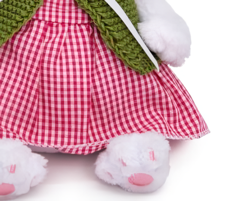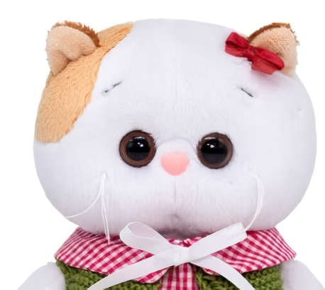 Обворожительная кошечка Ли-Ли станет приятным и запоминающимся подарком для девочки. Лиличка в комплекте в стиле Прованс. Милое платьице в мелкую красно‑белую клеточку, сшитое с отложным воротничком и белым бантиком. Вязаный жилет цвета травы и маленький алый бантик на ушке.