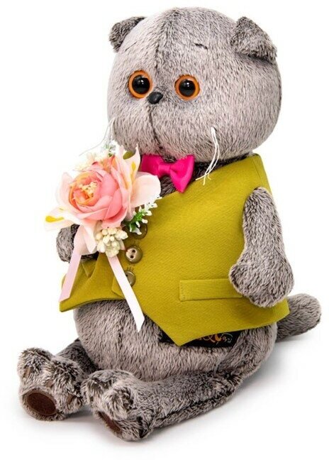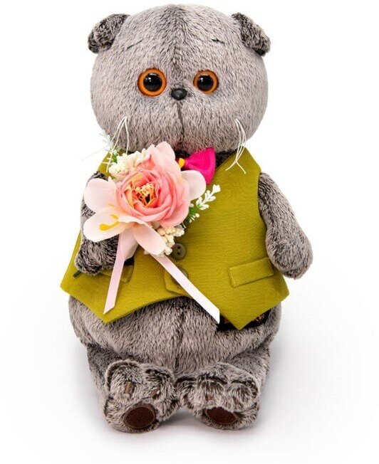 Мягкая игрушка Budi Basa Басик в жилете и с букетом 22 см (размер: маленькая)
