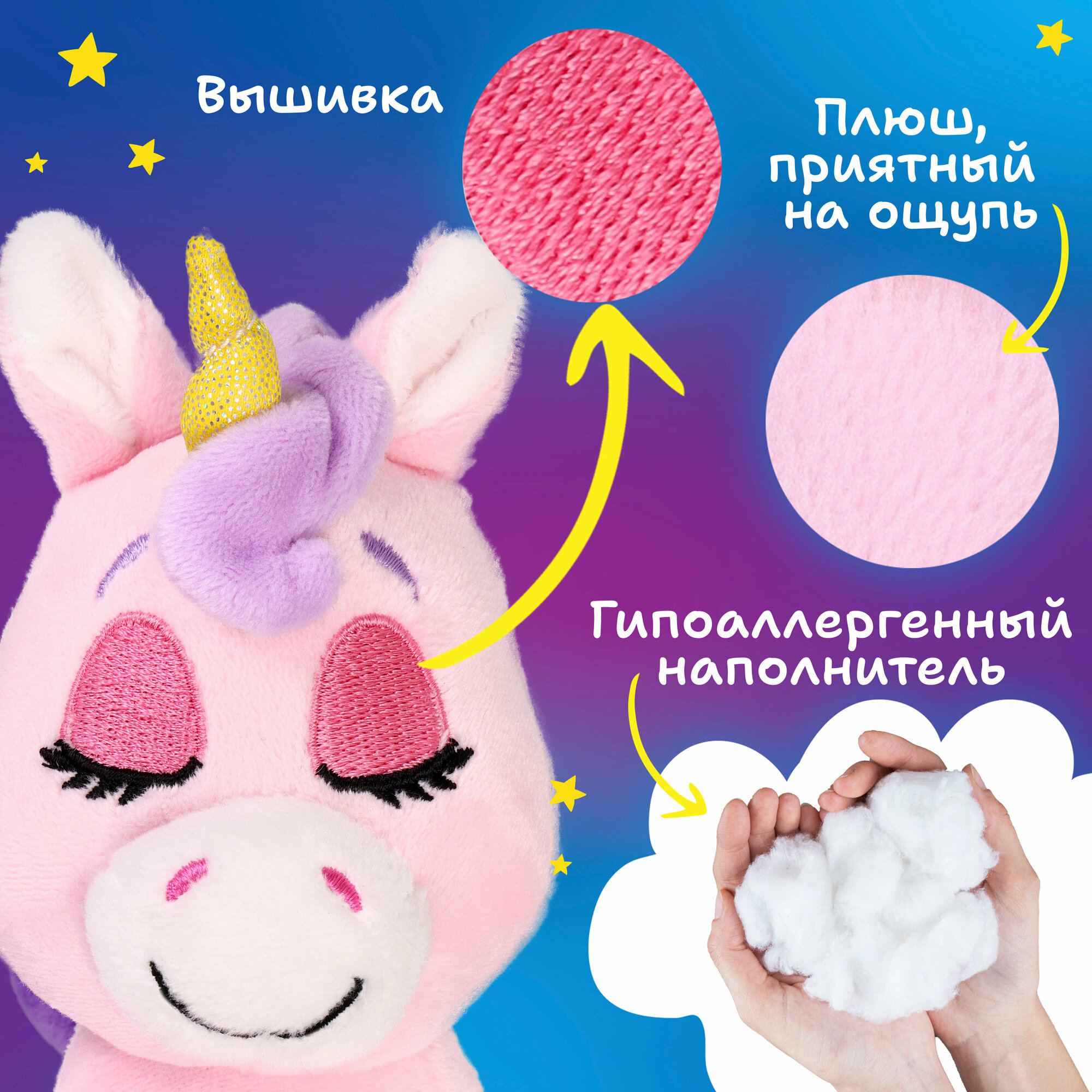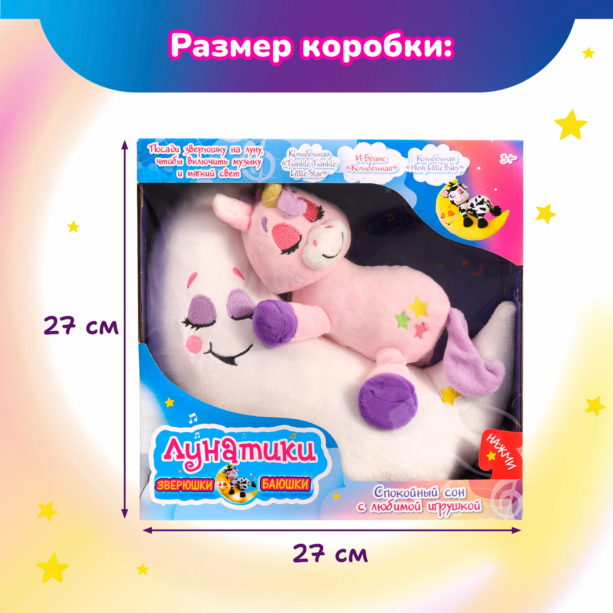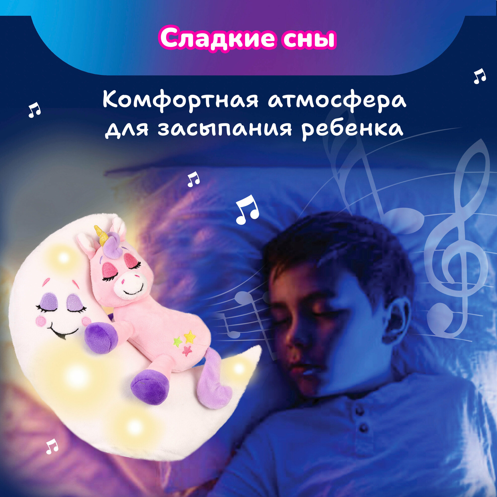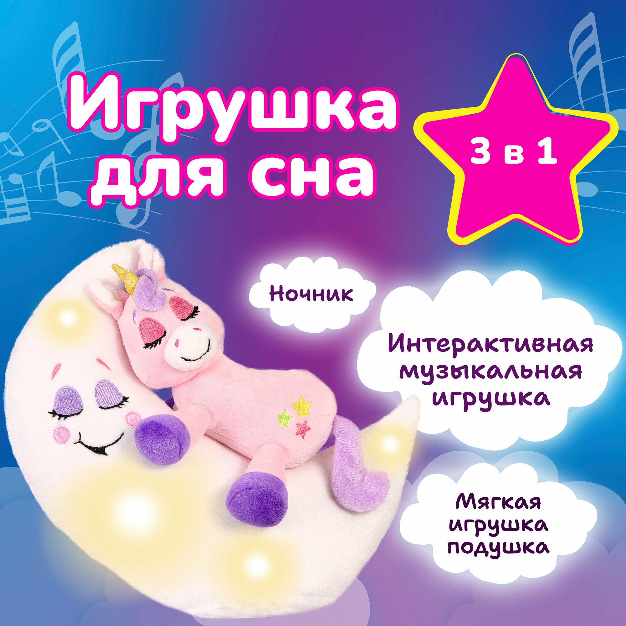 Зверюшка-баюшка Единорог бренда «Лунатики» - мягкая интерактивная игрушка с подсветкой и музыкой для девочек и мальчиков от 3-х лет.