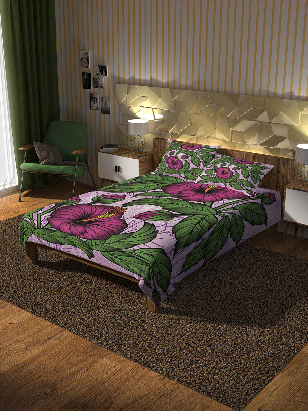 Модель: Покрывало Распустившиеся бутоны 220х235 и две наволочки 50x70