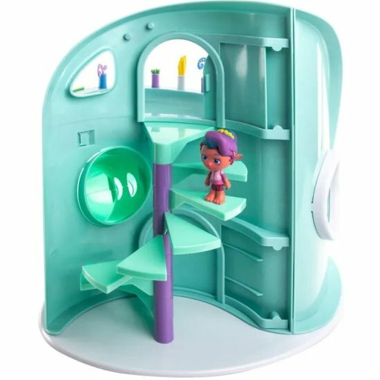 Игровой набор состоит из двух уровней и имеет высоту 38 см. На первом этаже расположена общая комната монсиков с большим диваном и монитором наблюдения со сменными карточками, а на втором терраса Лолы, на которой она выращивает свои волшебные растения. Подняться на второй этаж можно по вращающейся лестнице, а если необходимо вниз - есть горка.