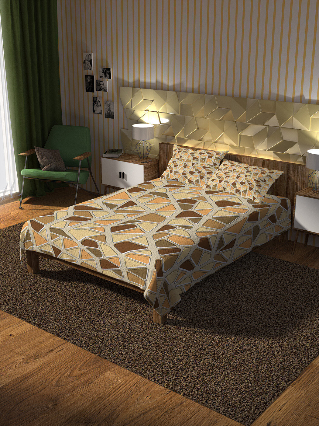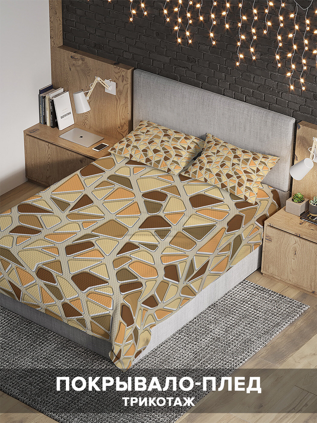 Модель: Покрывало Мозаичная река 220х235 и две наволочки 50x70