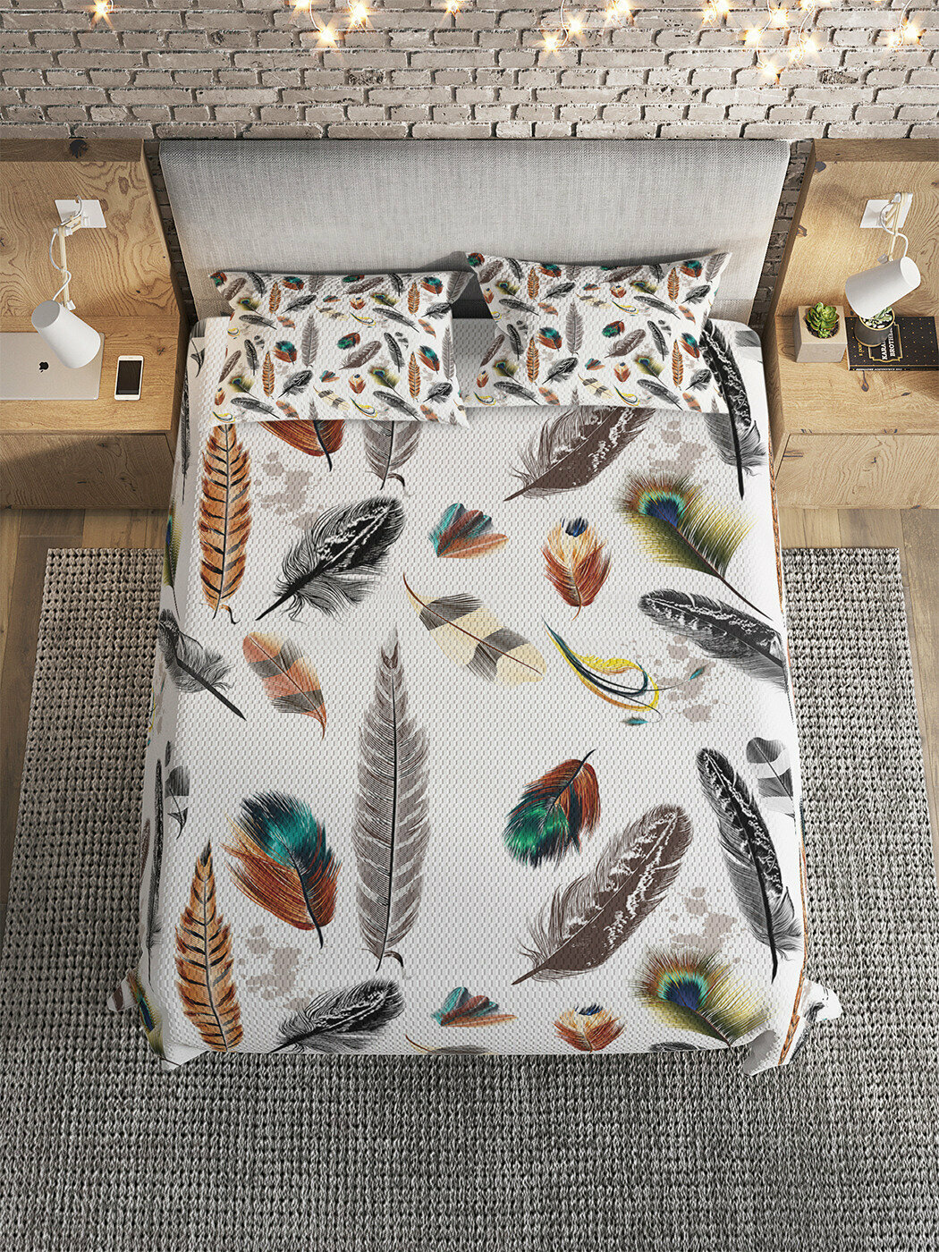 Покрывало Ambesonne 220х235 см с 2 наволочками 50x70 см Покрывало Перьевое разнообразие 220х235 и две наволочки 50x70 (размер: евростандарт)