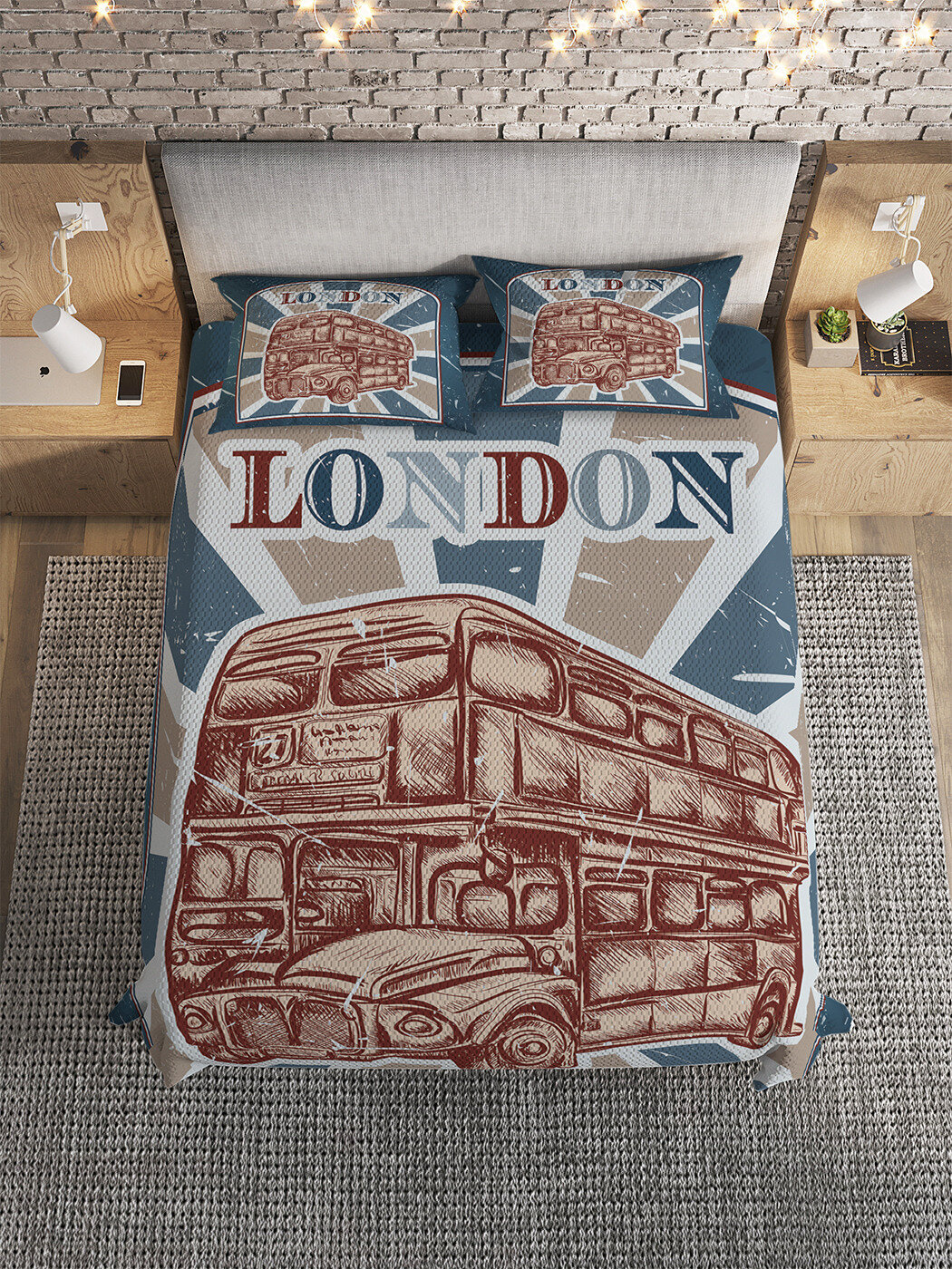 Покрывало с чехлами Ambesonne bcsl_31325 160x220 см синий Покрывало Эмблема Лондонского автобуса 160х220 и две наволочки 50x70 (размер: 1.5-спальный)