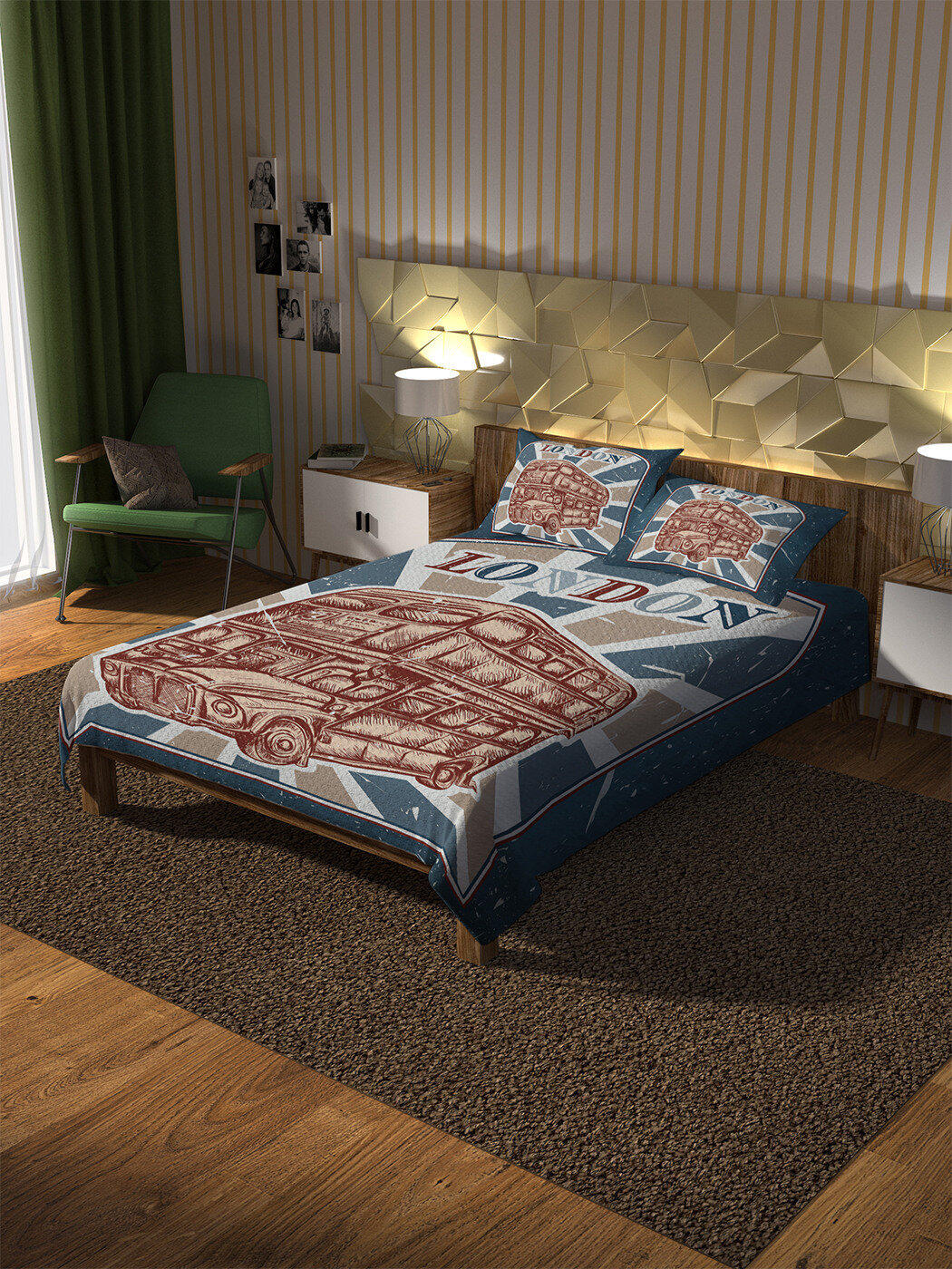 Модель: Покрывало Эмблема Лондонского автобуса 160х220 и две наволочки 50x70