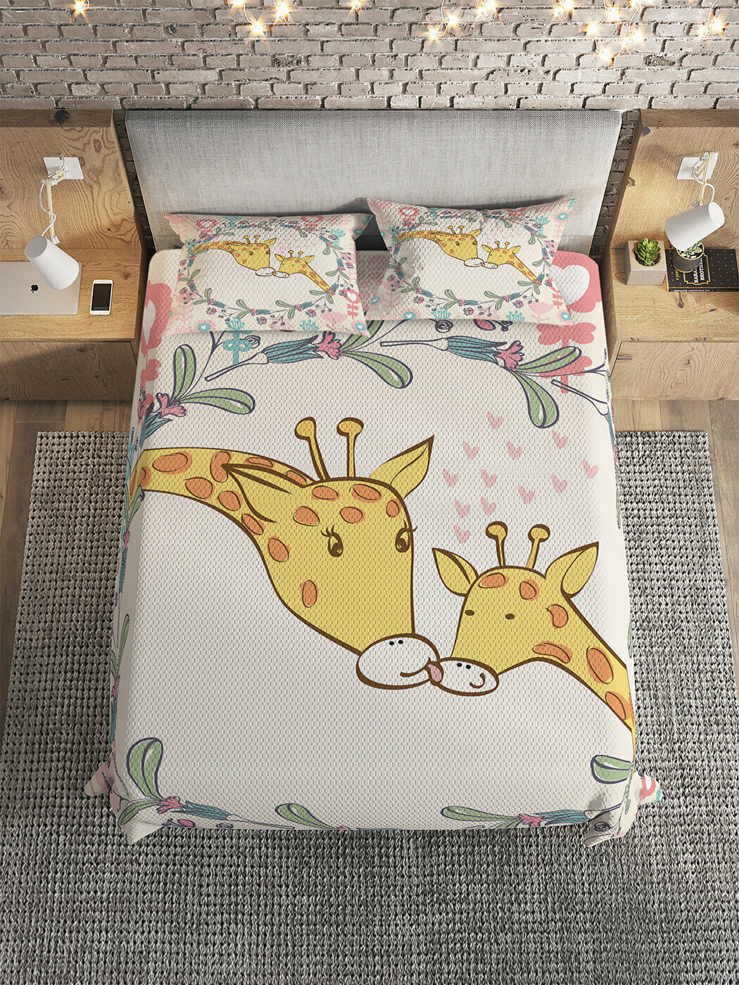 Покрывало Ambesonne 160х220 см с 2 наволочками 50x70 см Покрывало Поцелуй жирафов 160х220 и две наволочки 50x70 (размер: 1.5-спальный)